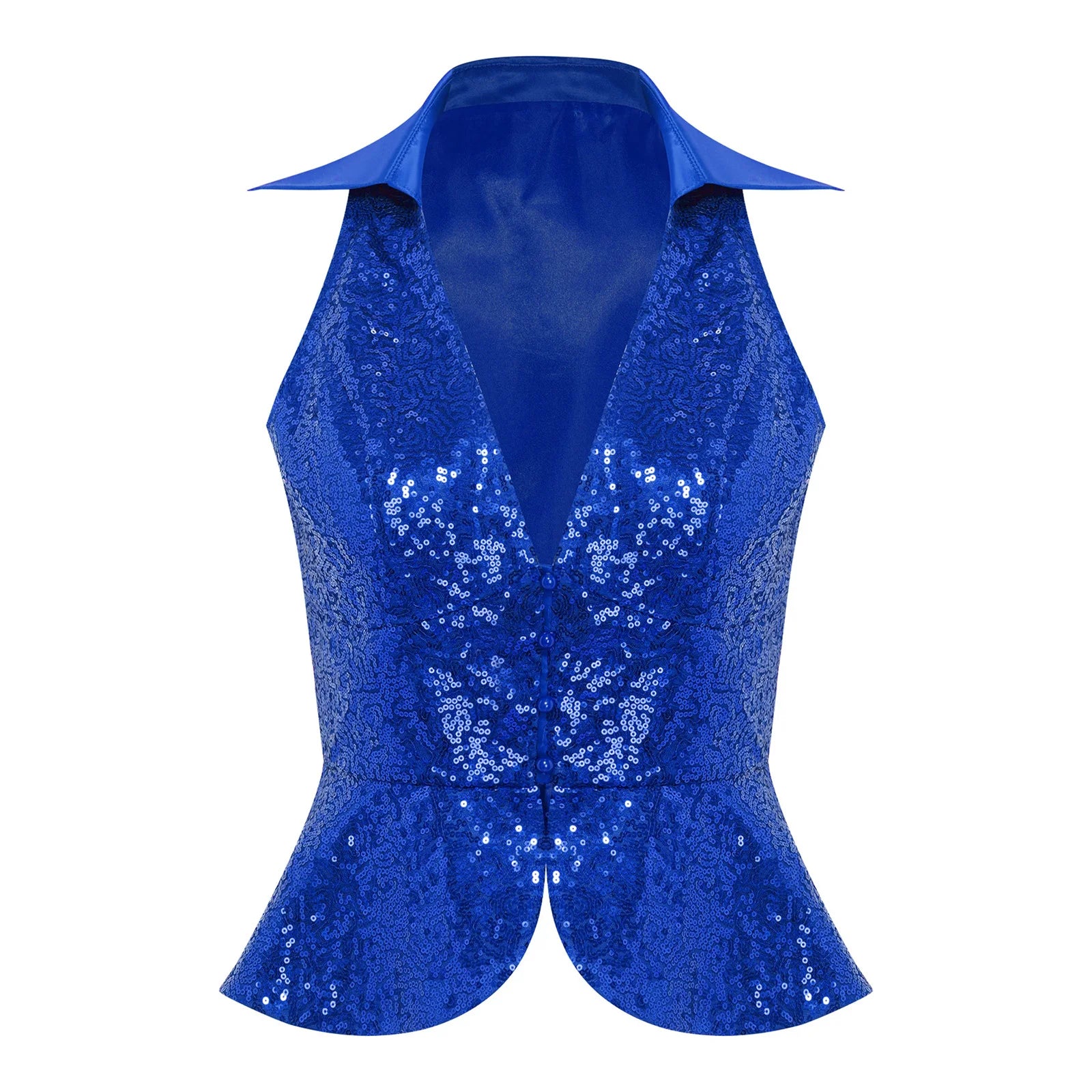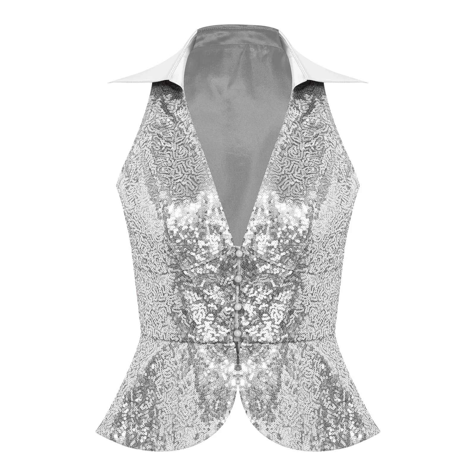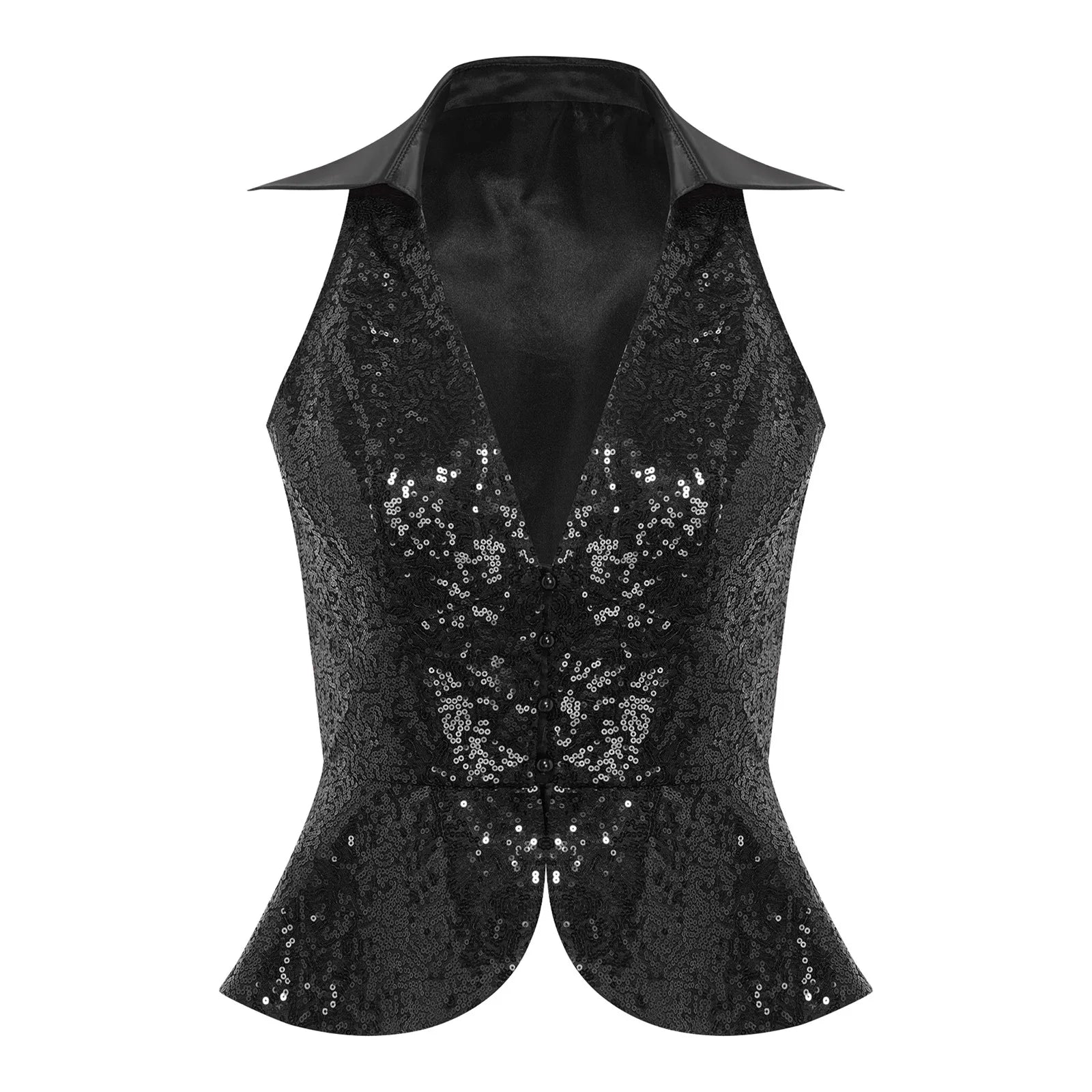 Crafted from premium broadcloth polyester with a slight stretch for comfortable movement, this halter-style vest features a classic peplum hem that accentuates your waist and adds dramatic flair. Perfect for nightclub outings, music festivals, jazz performances, or any event where you want to shine.