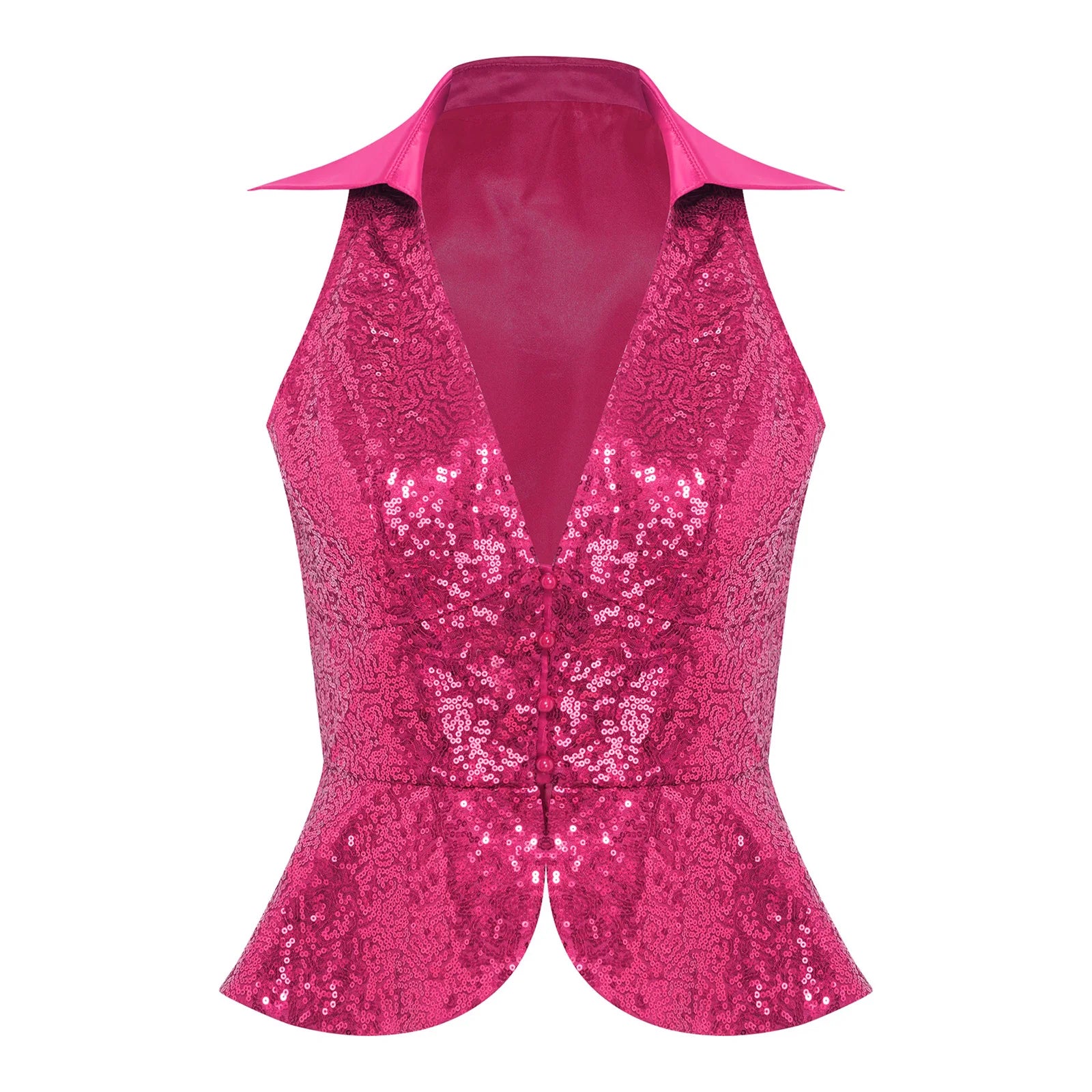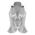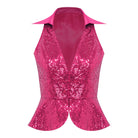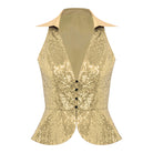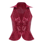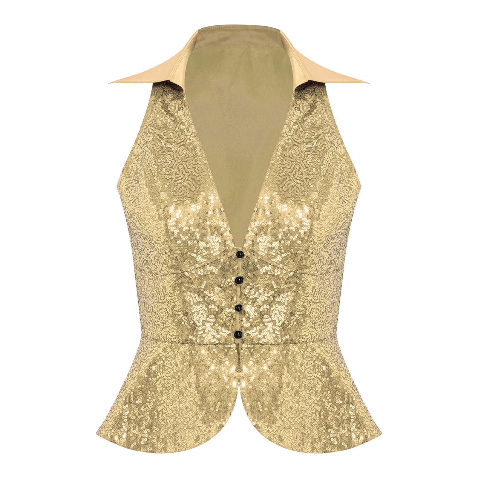 Light up the dance floor with this show-stopping sequin halter vest that brings instant glamour to any occasion. The eye-catching sequin embellishments catch and reflect light with every movement, while the flattering peplum silhouette creates a feminine, figure-enhancing shape that's both bold and sophisticated.
