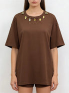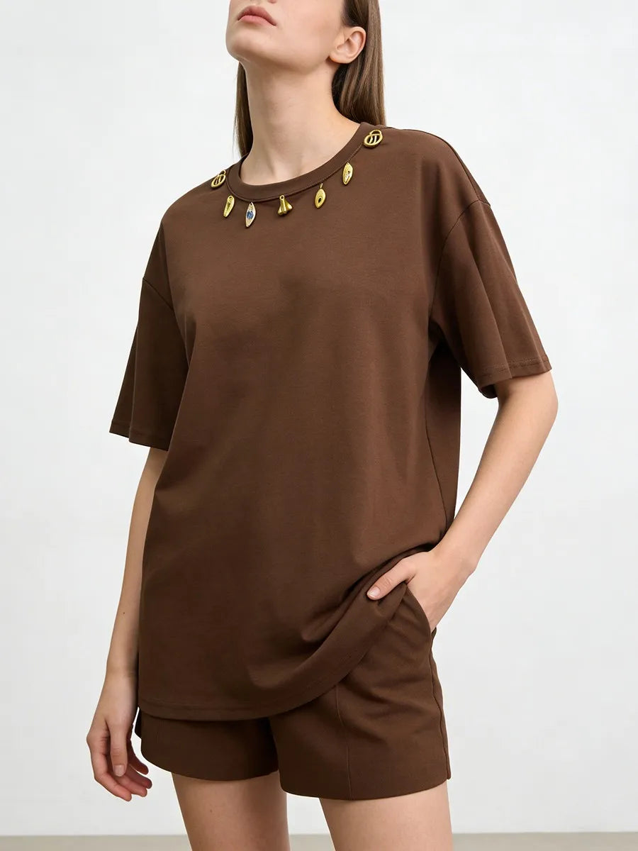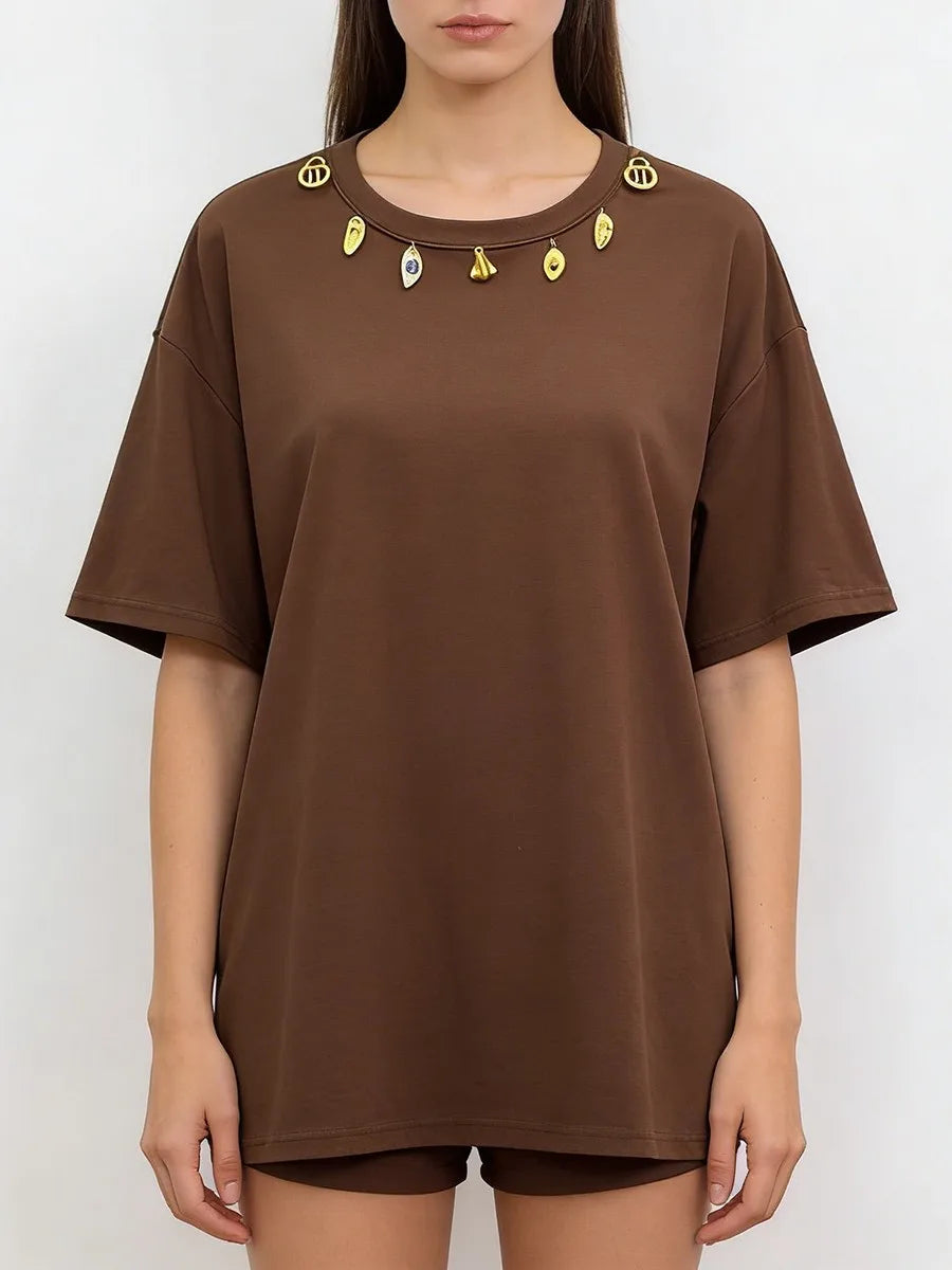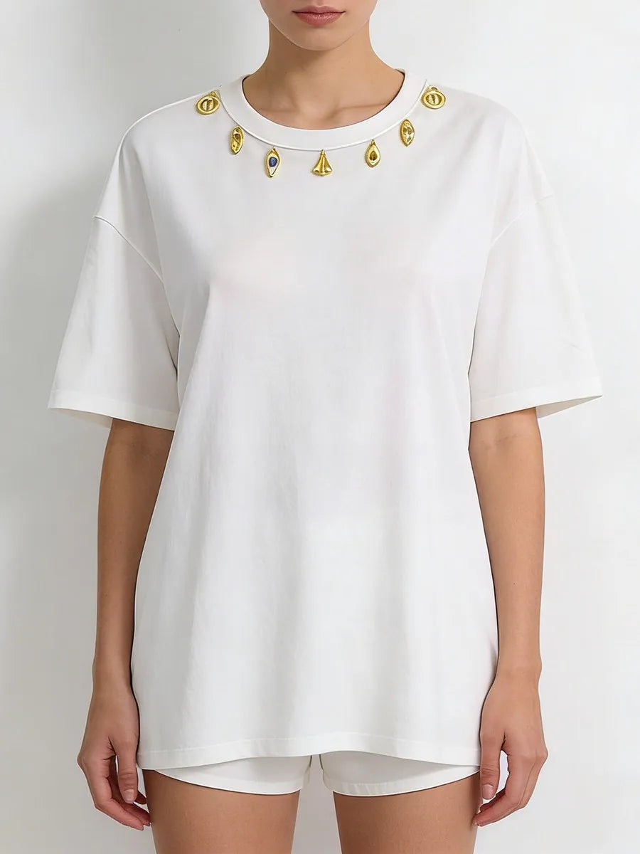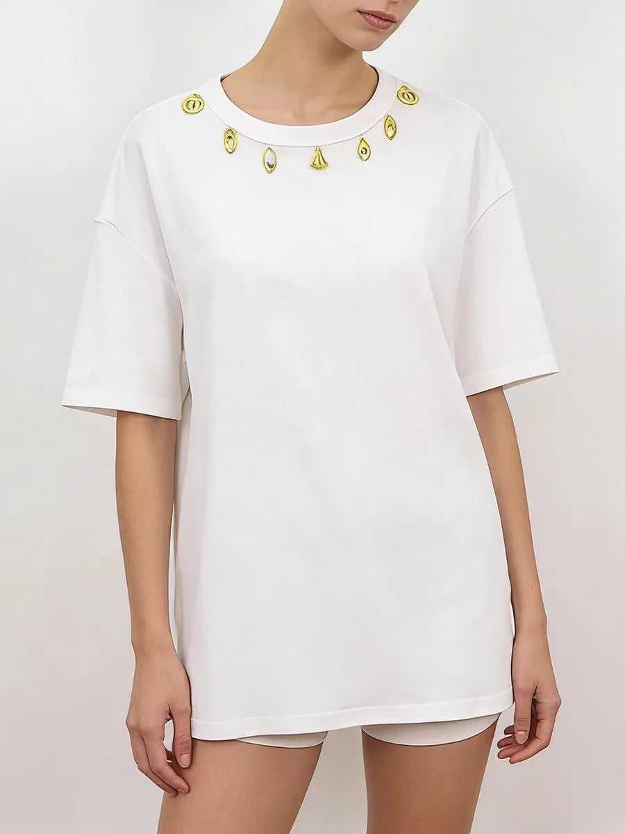 Trend4us Modern Gold Embellished Oversized Short-Sleeve Tee