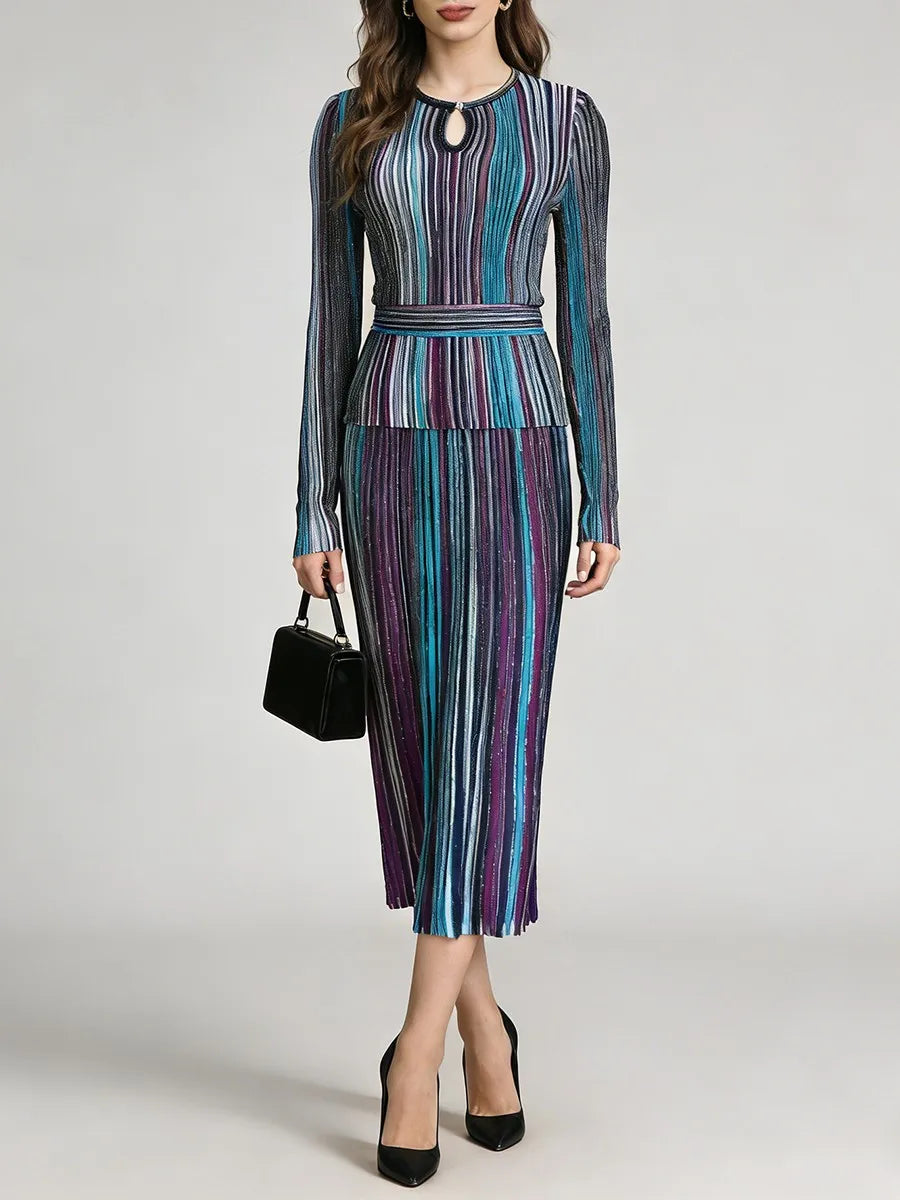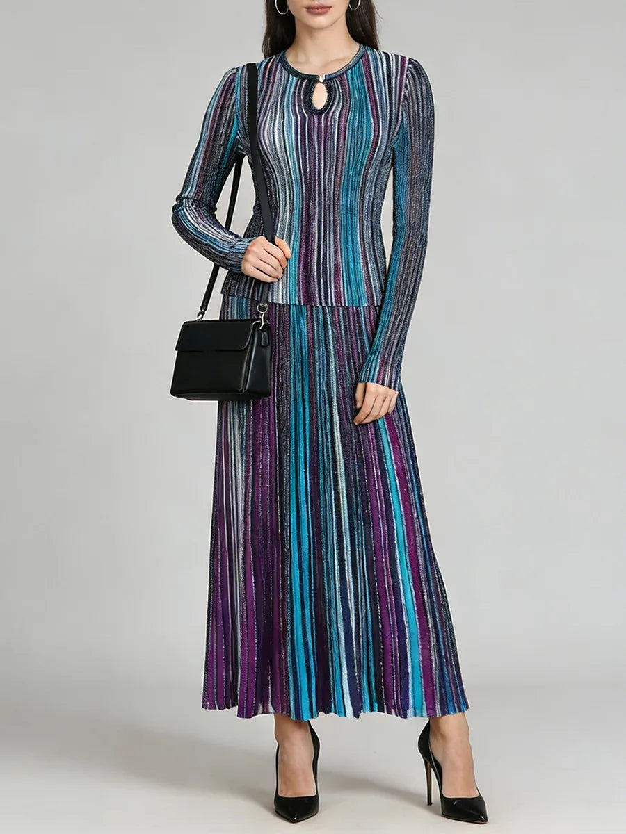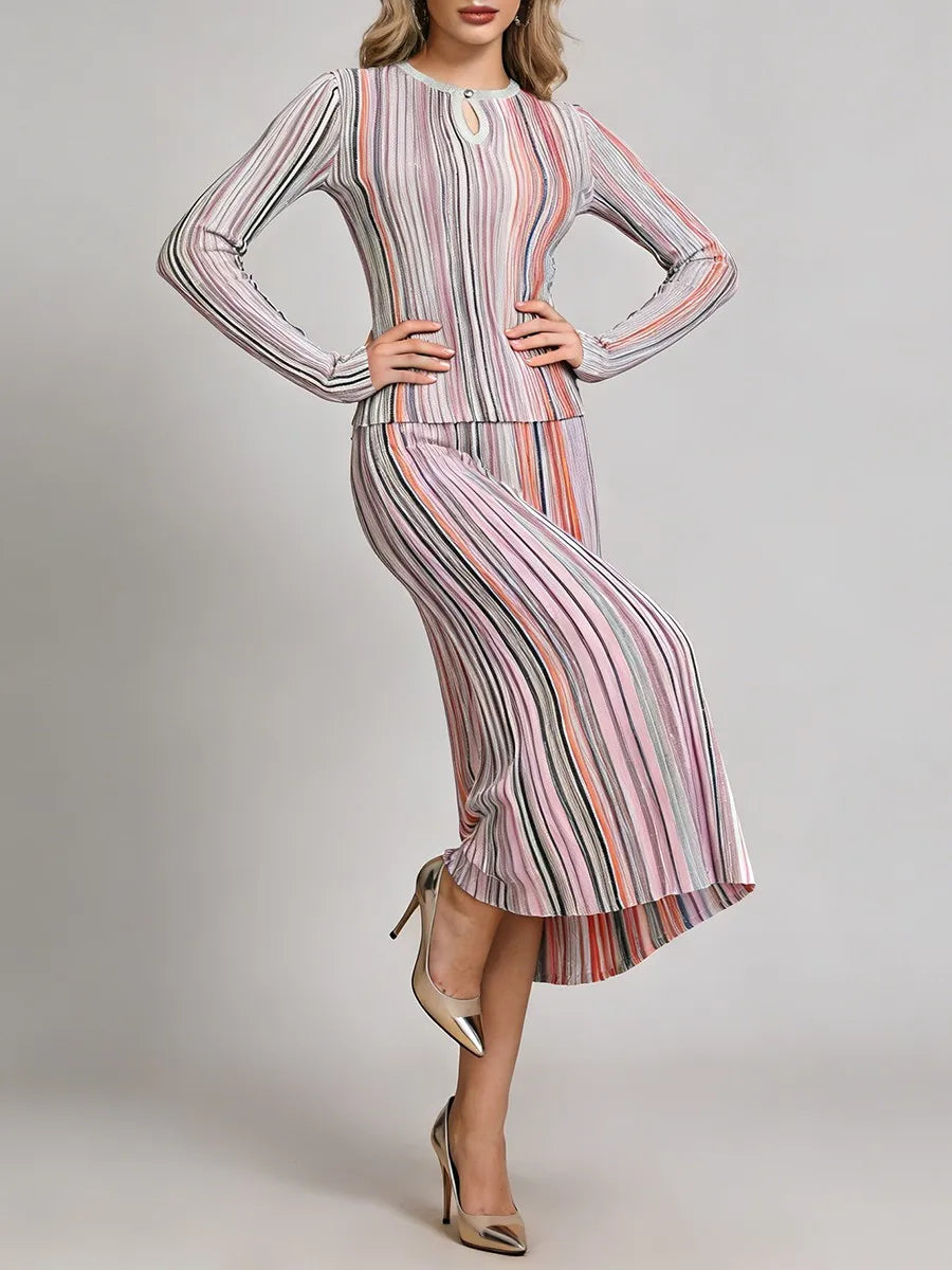 Trend4us Modern Striped Pleated Two-Piece Set