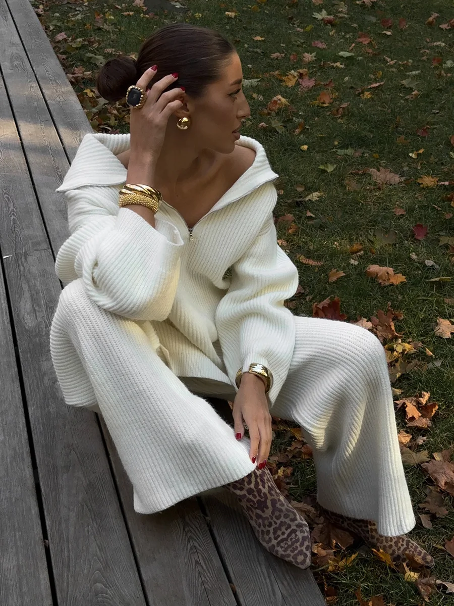 Indulge in ultimate comfort and refined minimalism with the Trend4us Oversized Cozy Knit Half-Zip Lounge Set. Designed for relaxed elegance, this two-piece ensemble features a luxuriously soft ribbed knit texture that wraps you in warmth while maintaining a chic, modern silhouette.