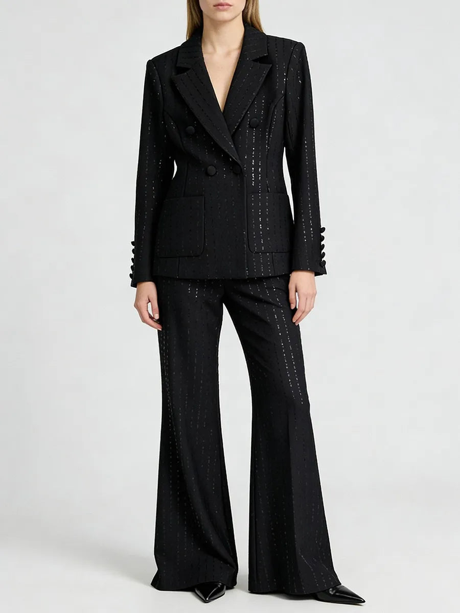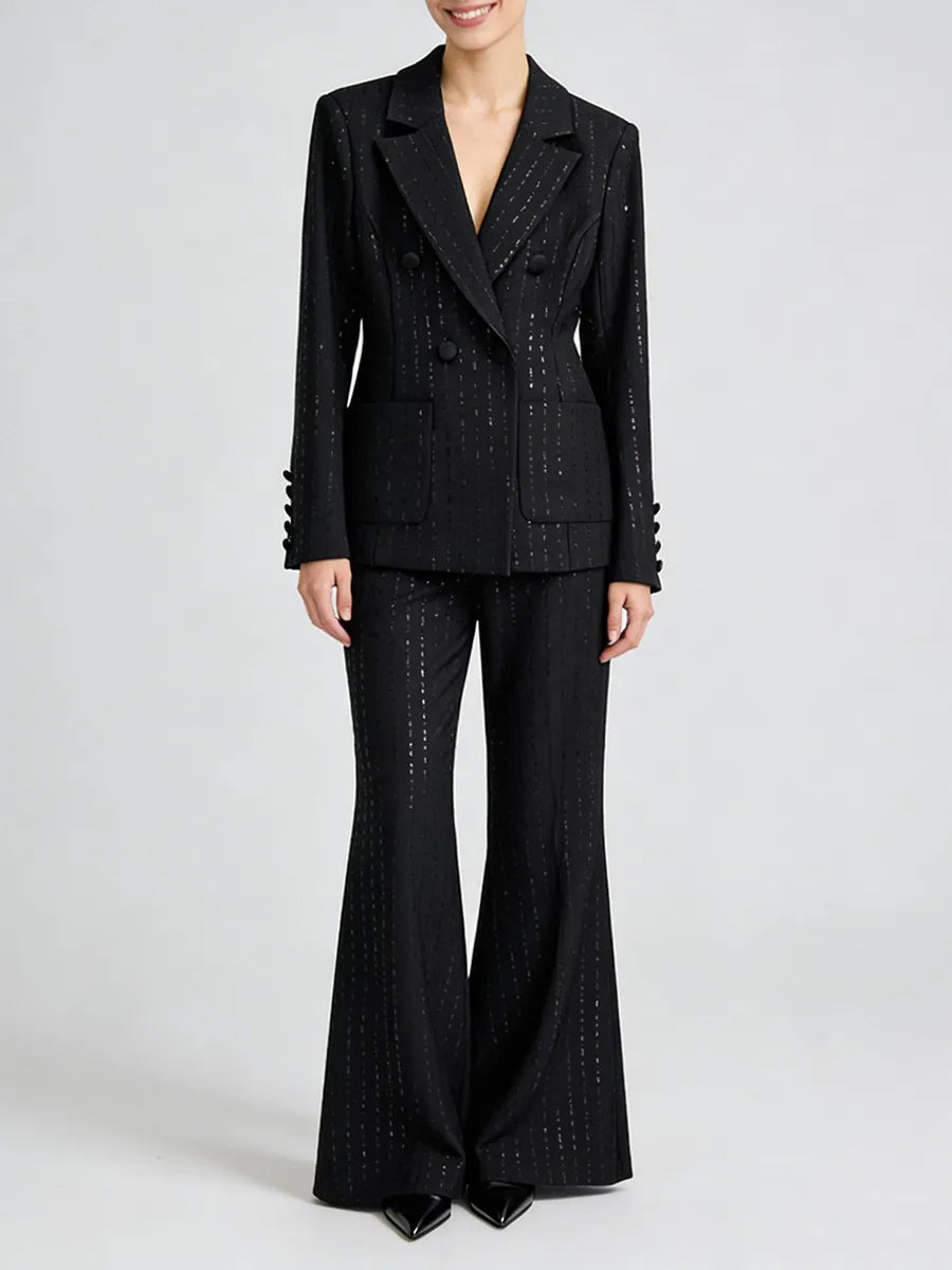 Command attention with the Trend4us Sequin Sparkle Pinstripe Blazer & Wide-Leg Pants Suit, a statement power set designed for modern elegance with a touch of glamour. This tailored two-piece suit features a structured double-breasted blazer and fluid wide-leg pants, elevated by subtle sequin sparkle pinstripes that catch the light with every movement.