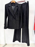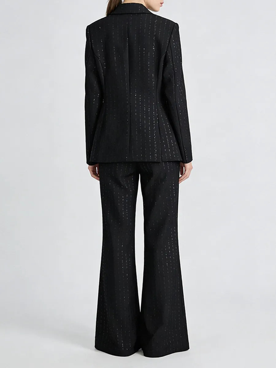 Trend4us Sequin Sparkle Pinstripe Blazer & Wide-Leg Pants Suit