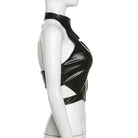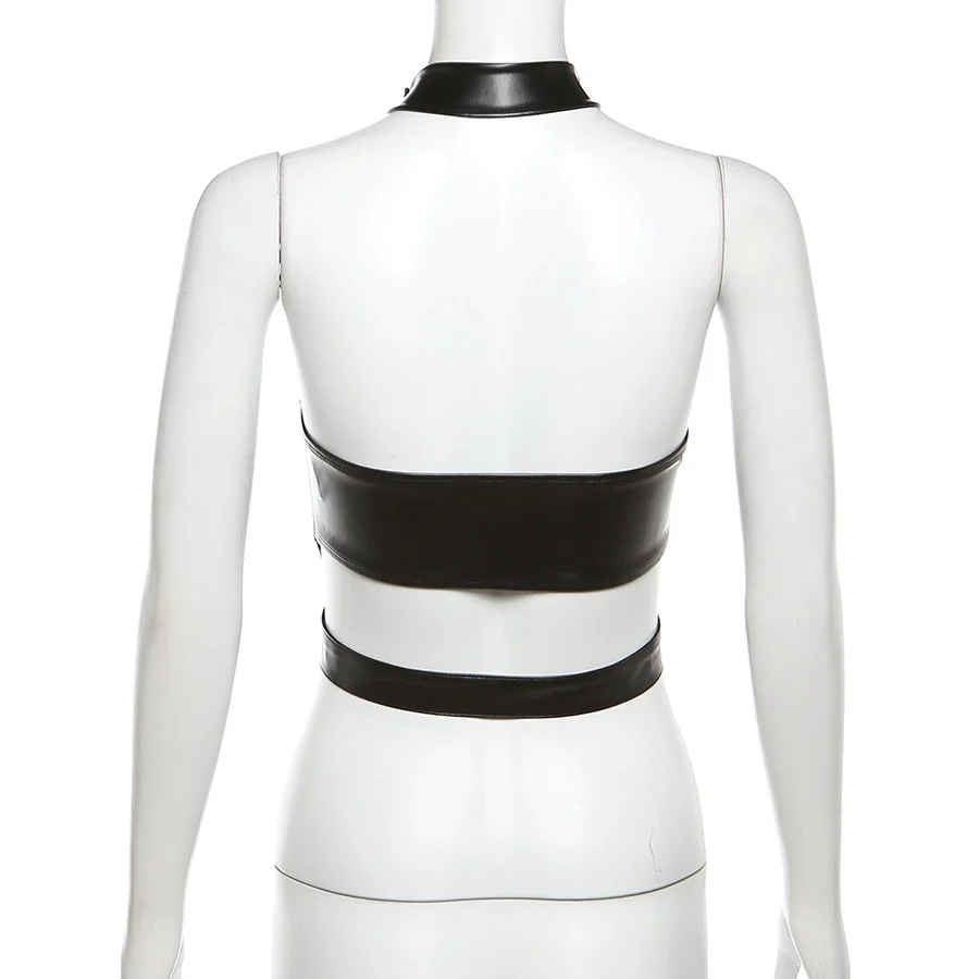 The sculpted silhouette contours the body while the open-back design enhances its daring appeal. Whether layered or worn solo, this top delivers a striking balance of minimalism and high-impact style, making it a go-to essential for nightlife, street looks, and glam outfits.