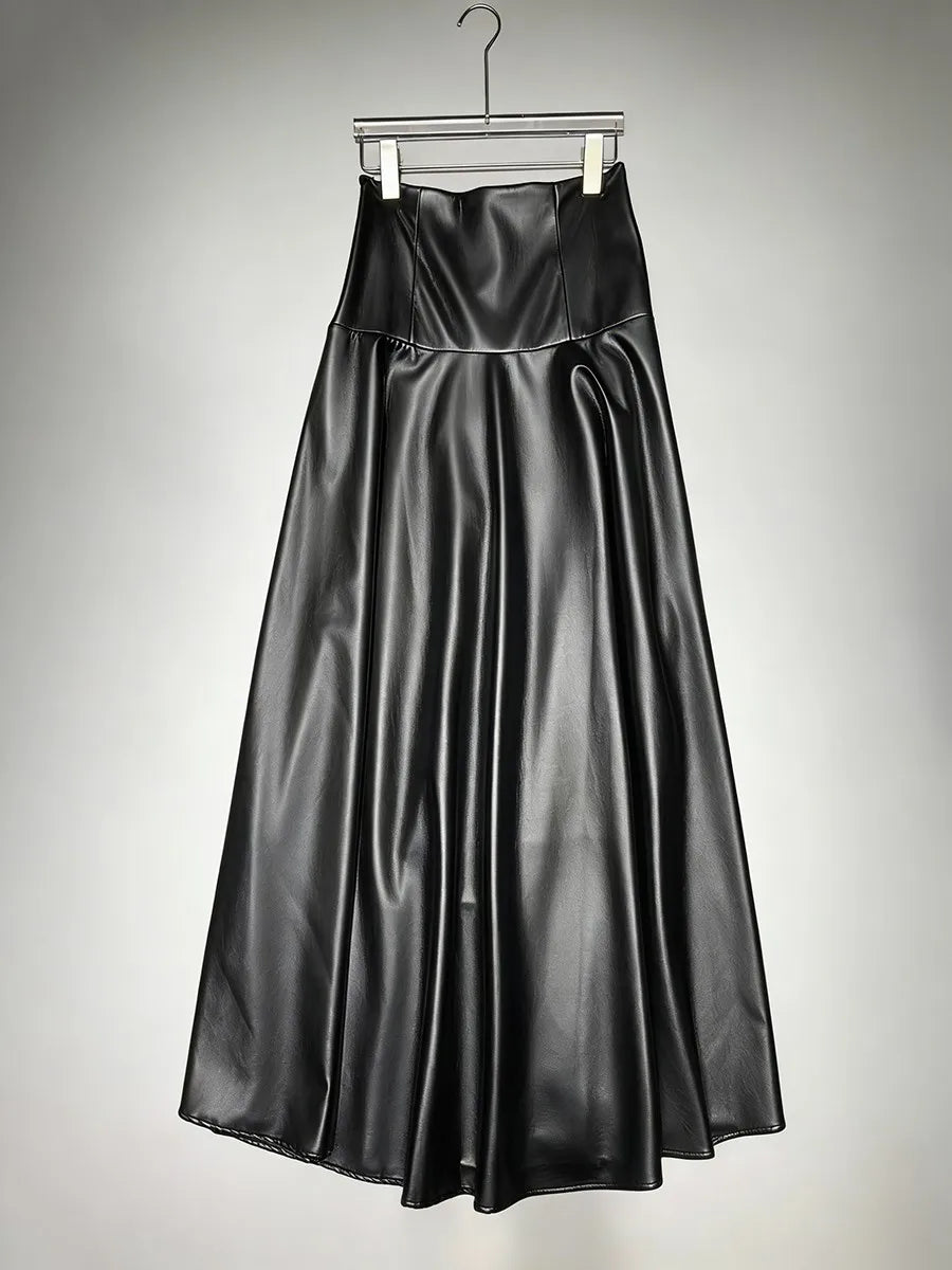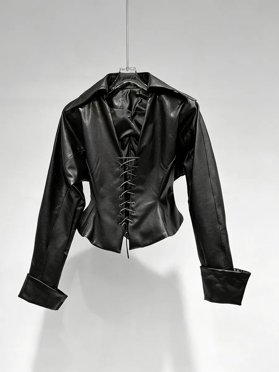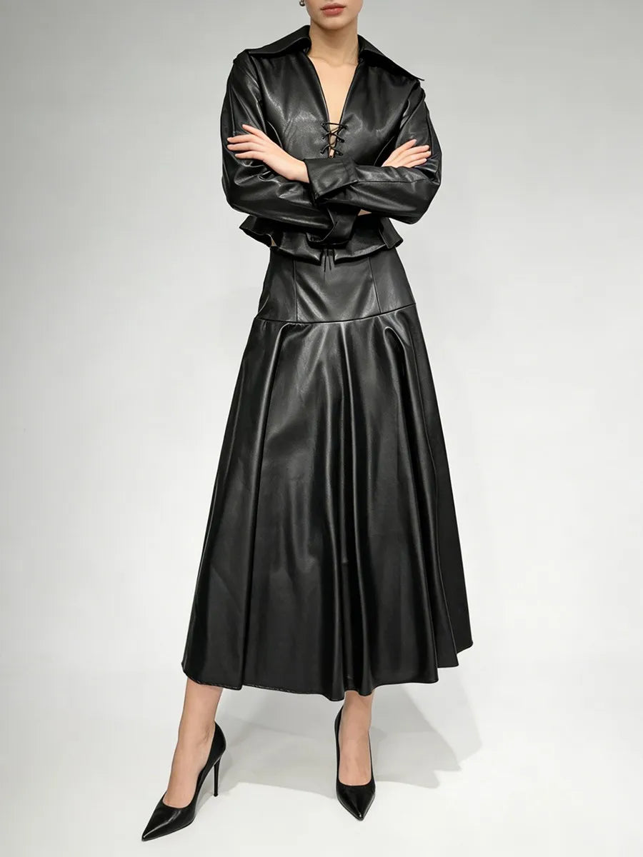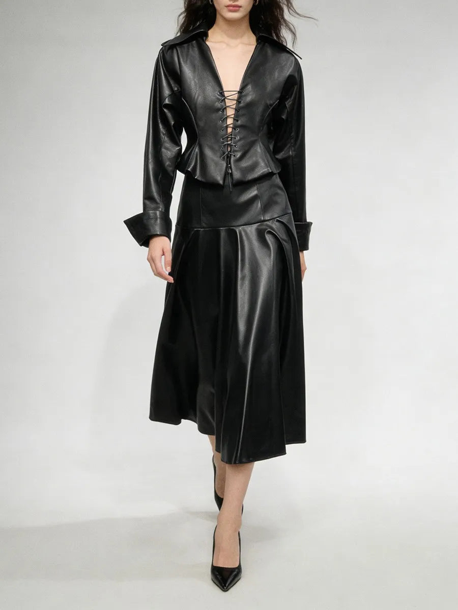 Trend4us Luxe Faux Leather Lace-Up Blazer & Midi Skirt Set