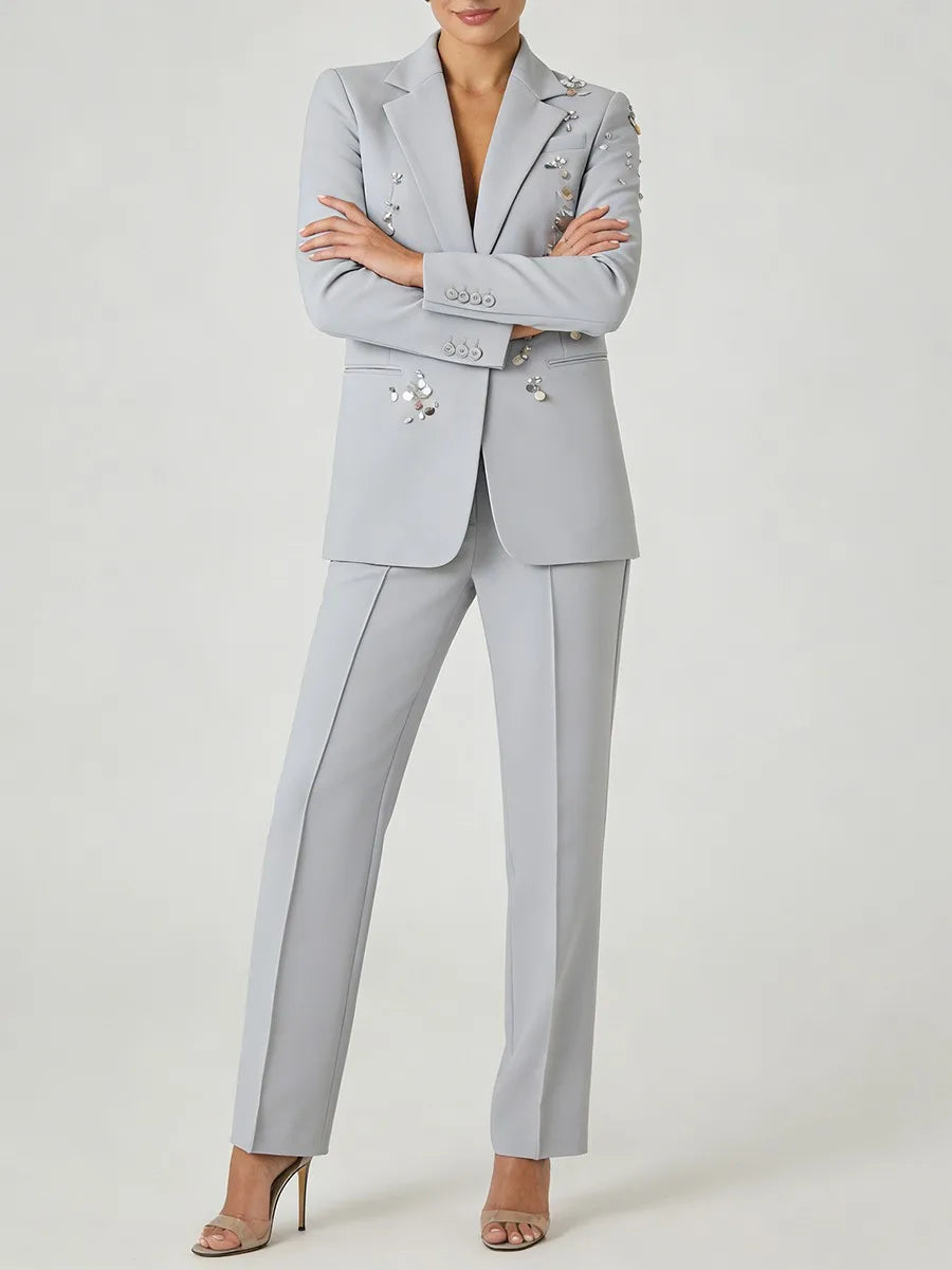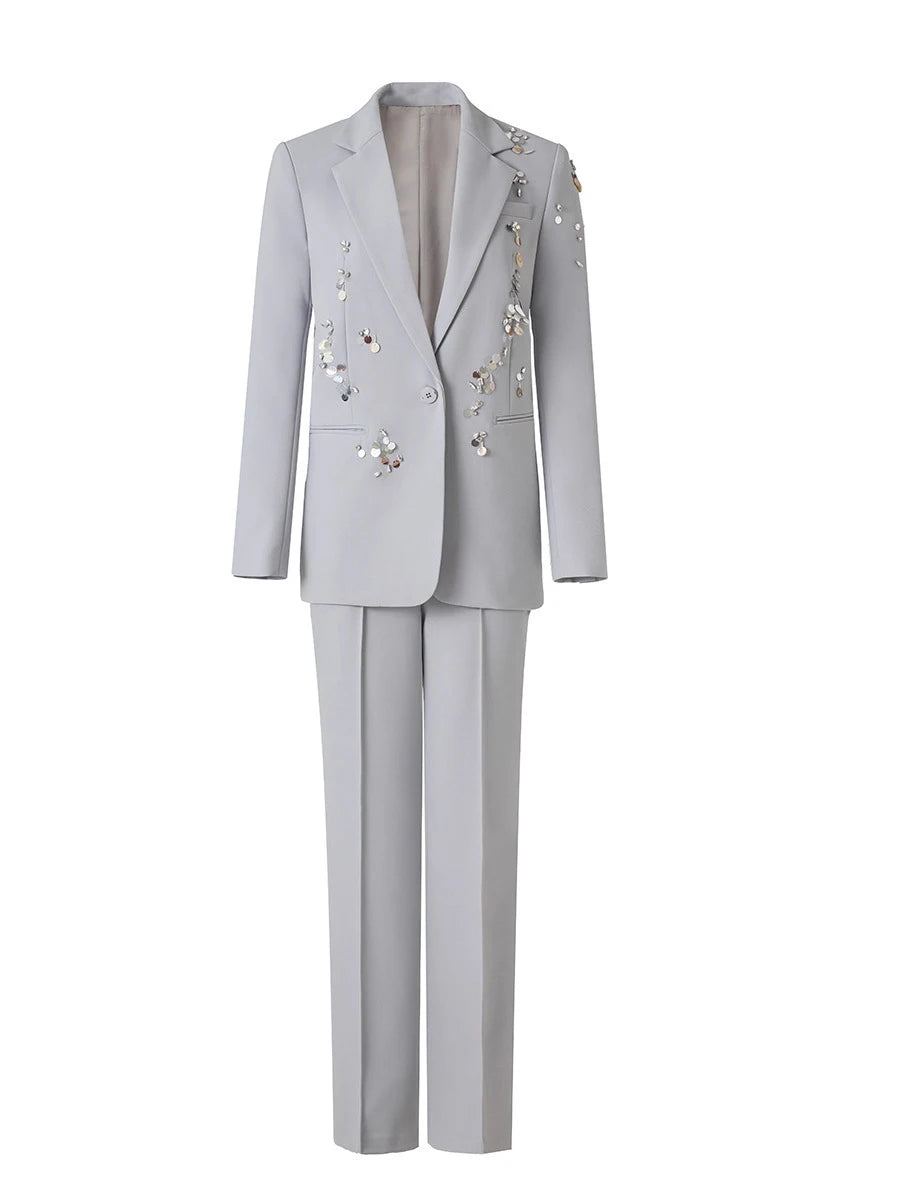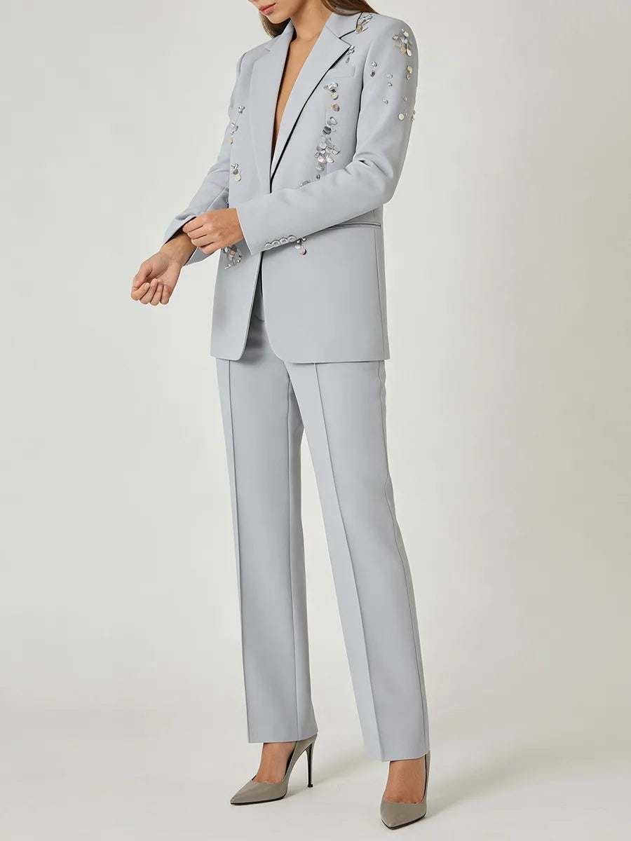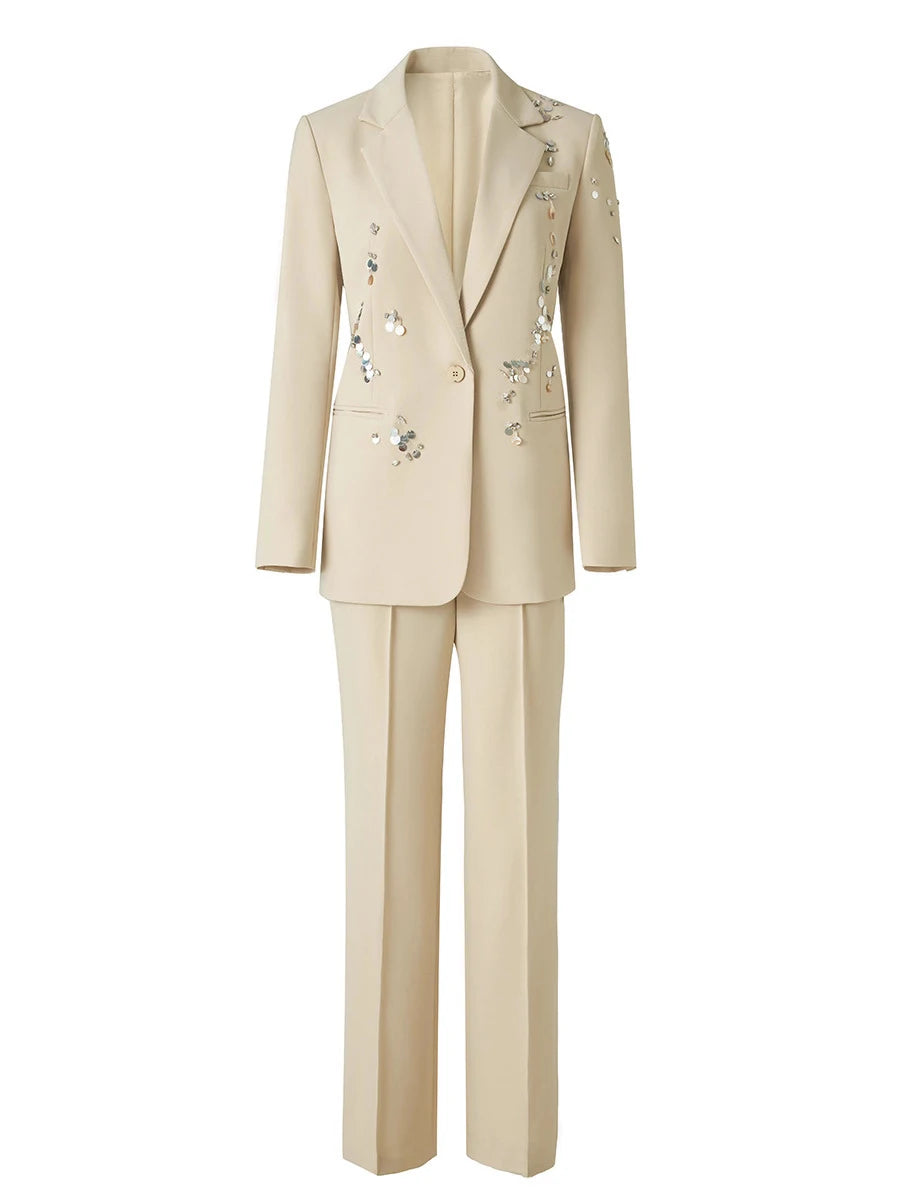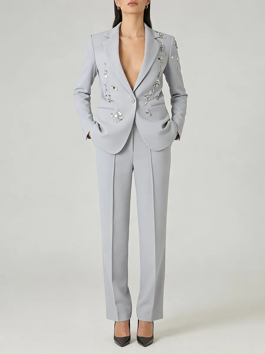 Trend4us Crystal Embellished Tailored Blazer & Pants Set