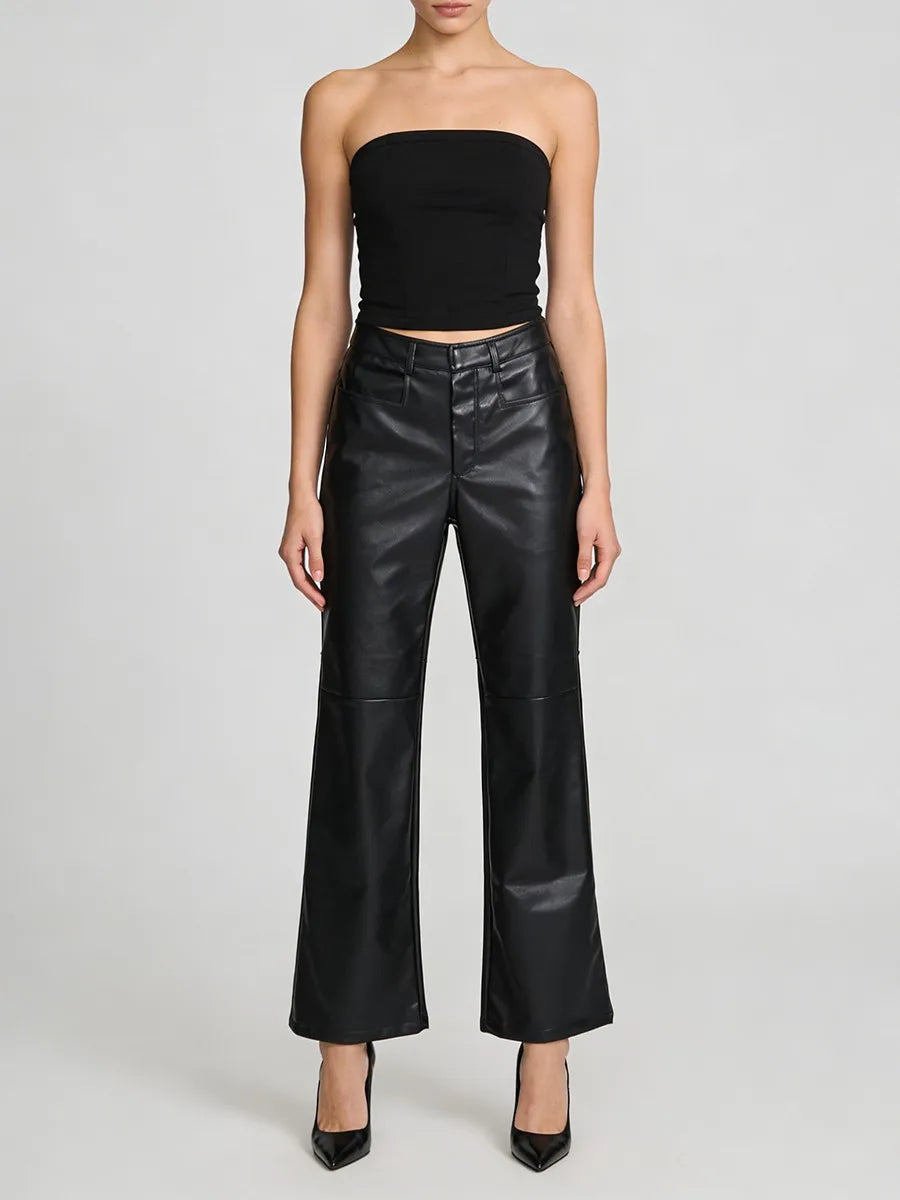 Trend4us Sleek High-Waisted Faux Leather Straight-Leg Pants