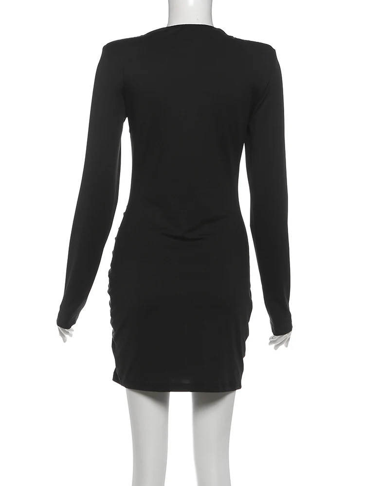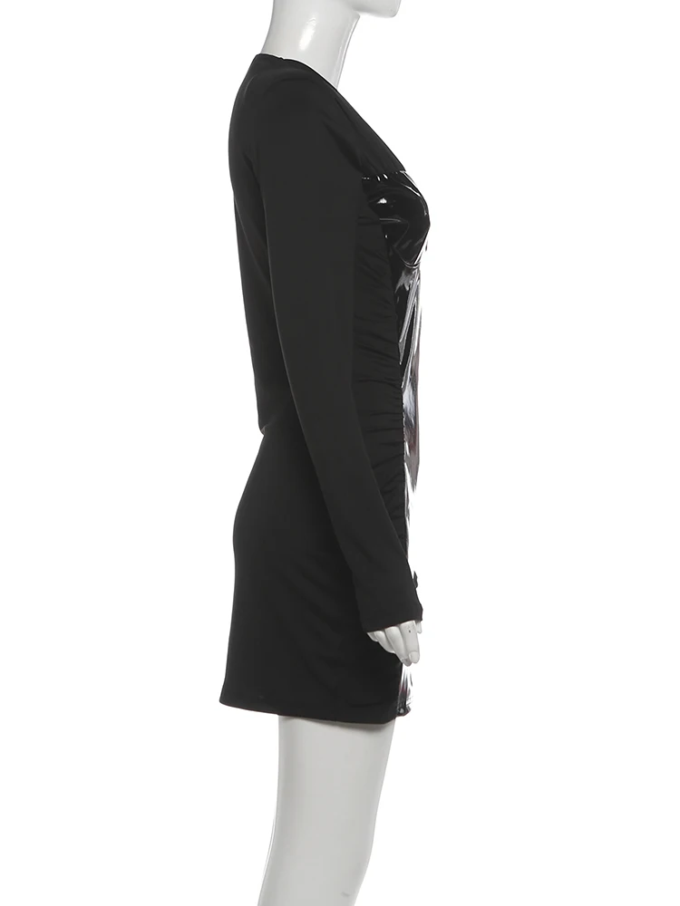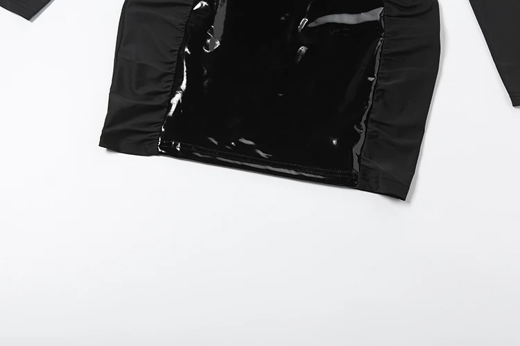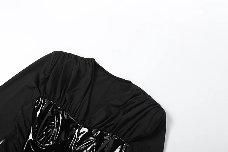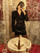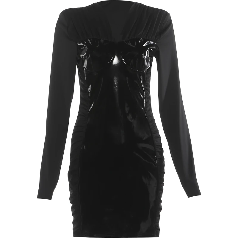 Trend4us Classic Glossy Leather Bustier Long-Sleeve Mini Dress