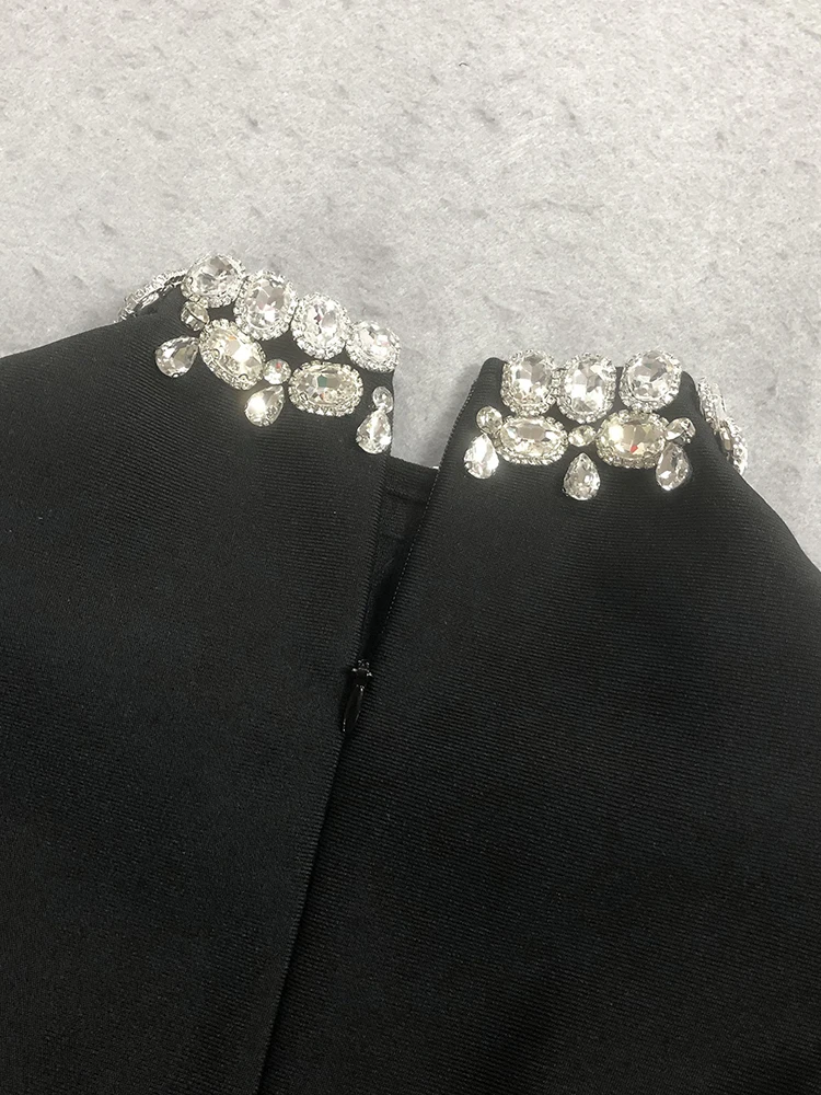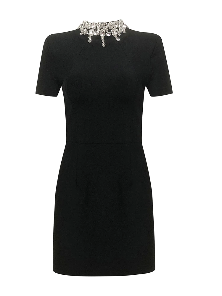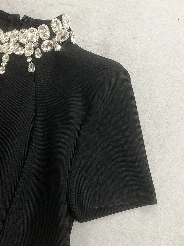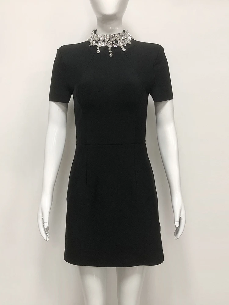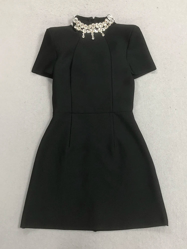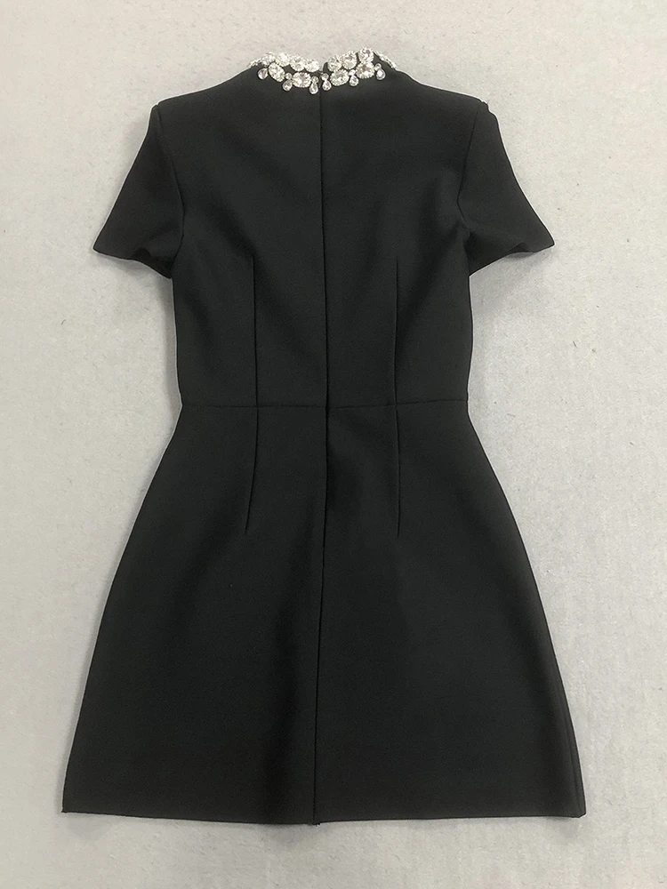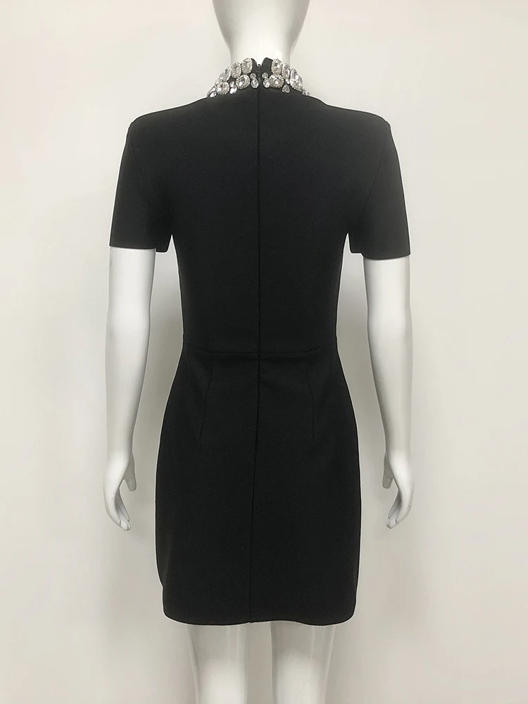 Trend4us Elegant Crystal Collar Short-Sleeve Mini Dress