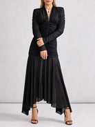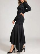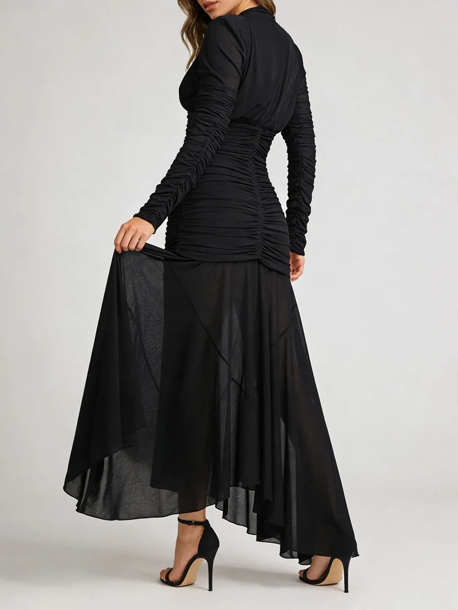 Trend4us Elegant Ruched Long-Sleeve Asymmetrical Maxi Dress