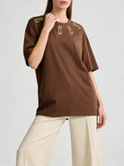 Trend4us Luxe Gold Charm Embellished Oversized Tee