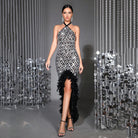 Trend4us Luxe Modern Crystal Halter Feather Evening Gown