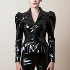 Trend4us Luxe Patent Faux Leather Puff-Sleeve Peplum Jacket
