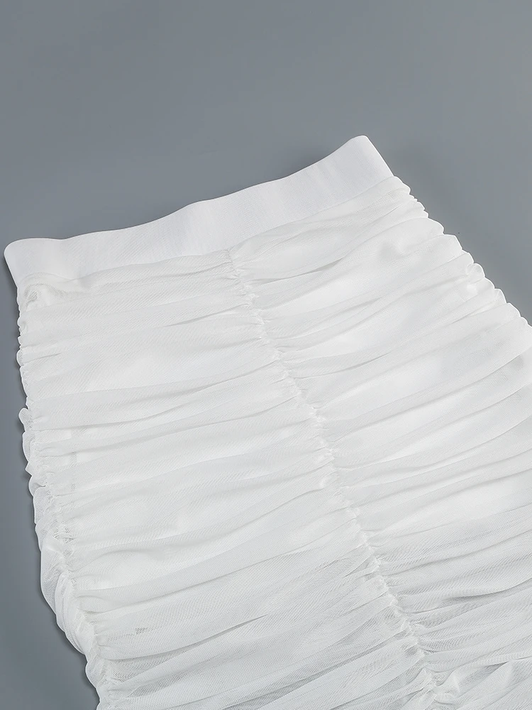 Trend4us Luxe Ruched Mesh Two-Piece Maxi Skirt Set