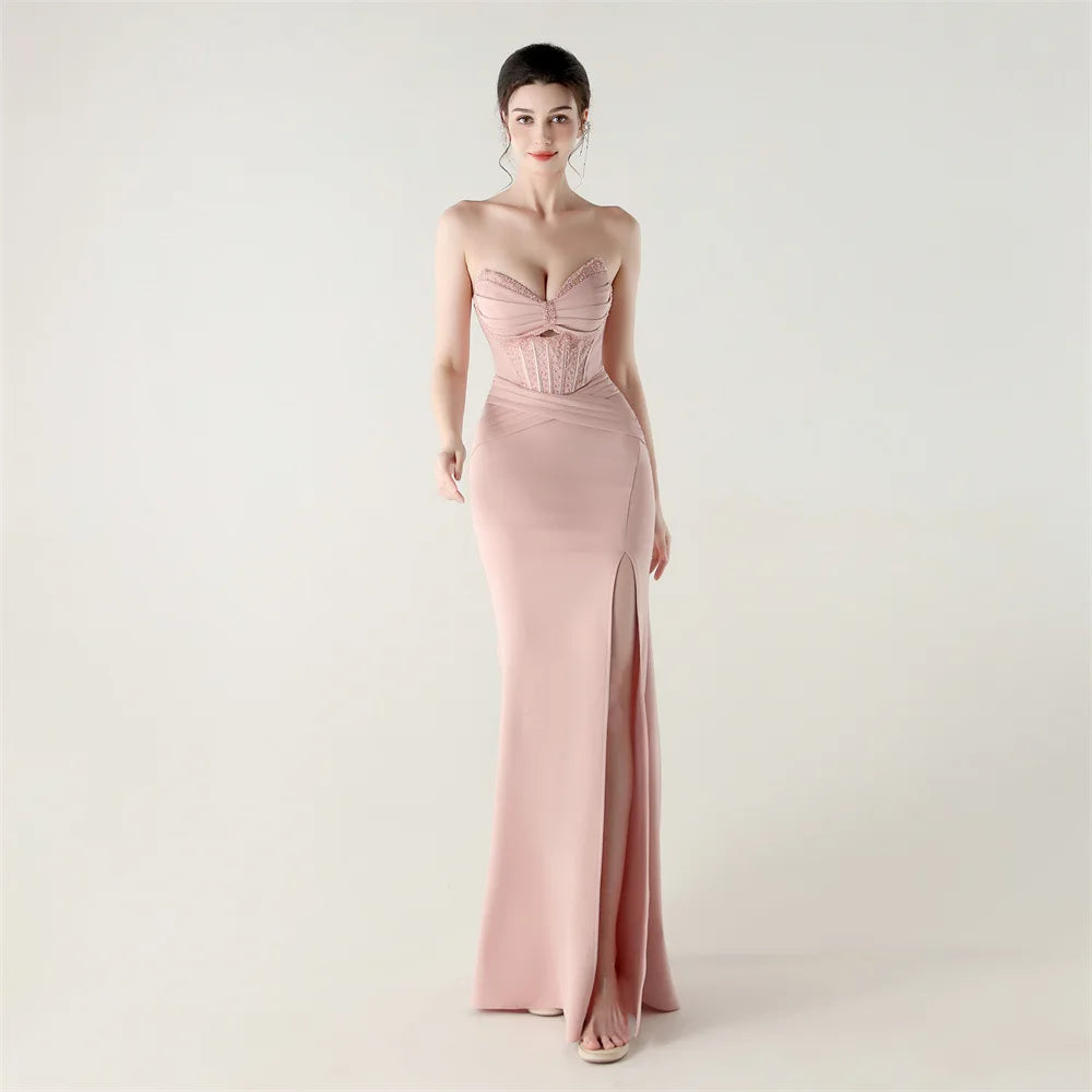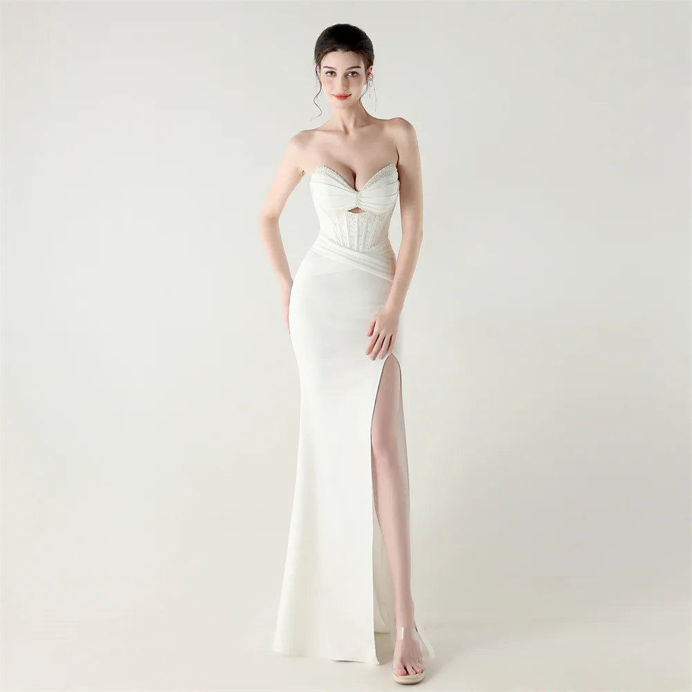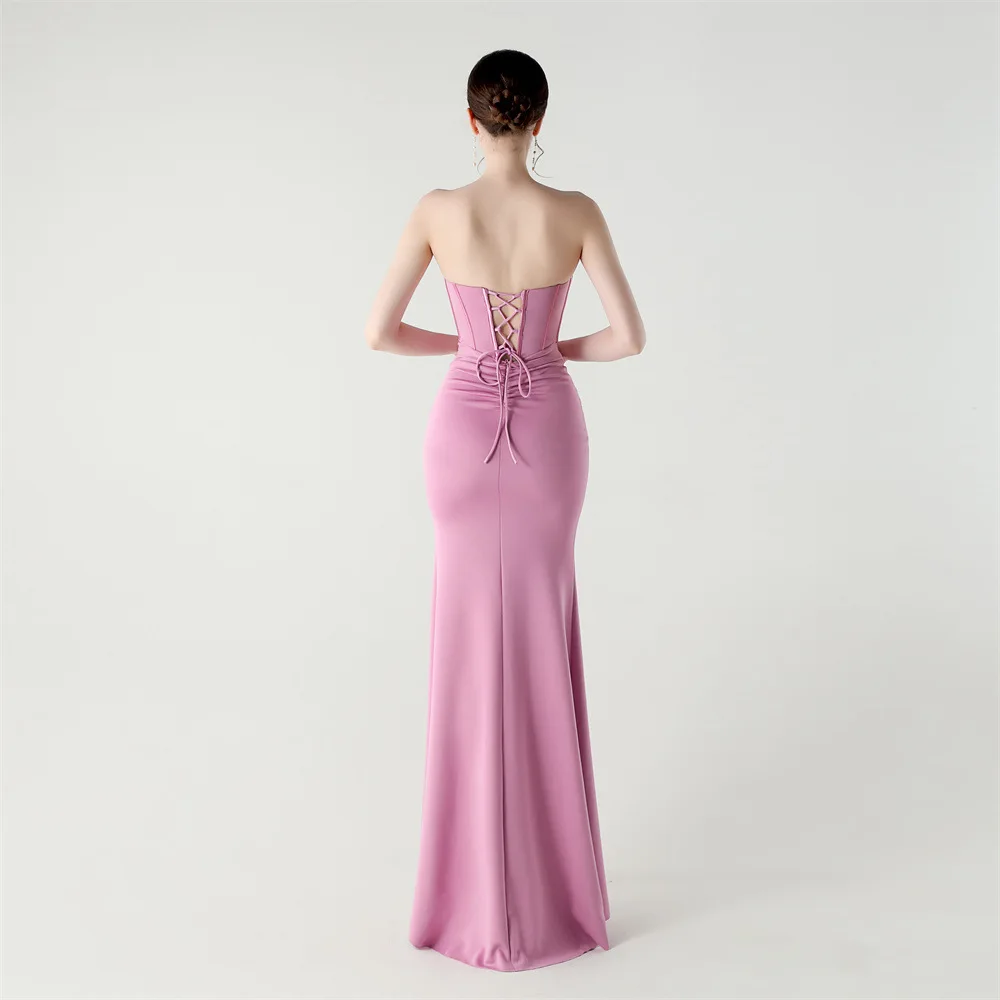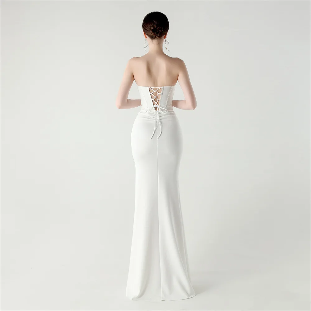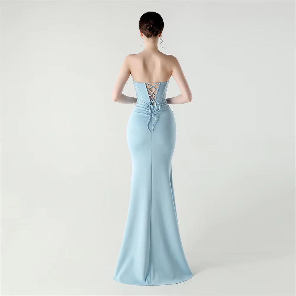 Step into timeless elegance with the Trend4us Luxe Strapless Corset Lace-Up Pleated Maxi Dress, a sculptural evening gown designed to captivate from every angle. Featuring a structured corset bodice with elegant boning, this strapless silhouette enhances the waist and supports the bust with couture precision.