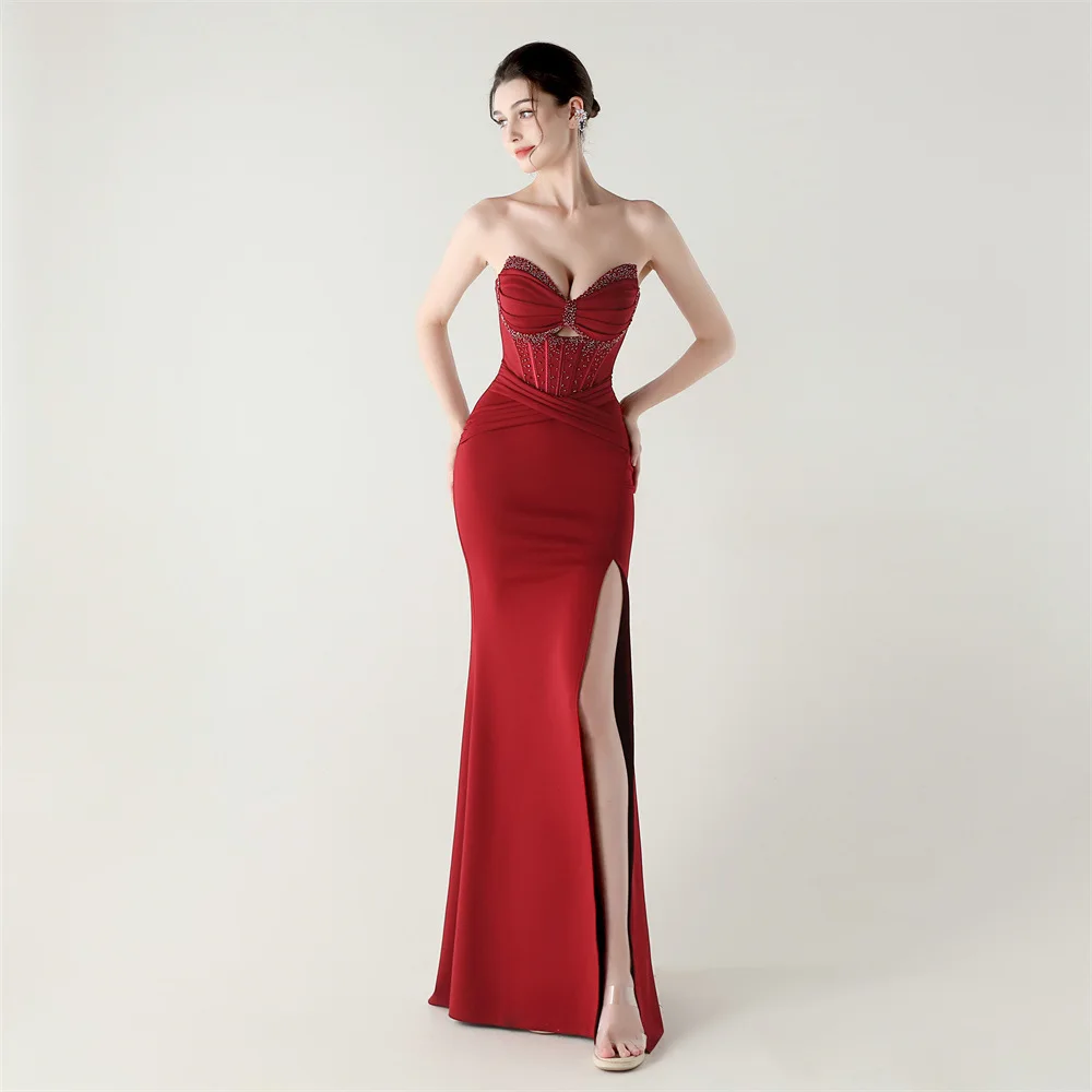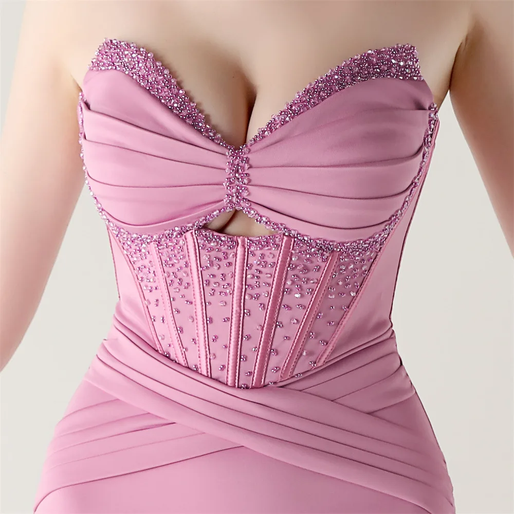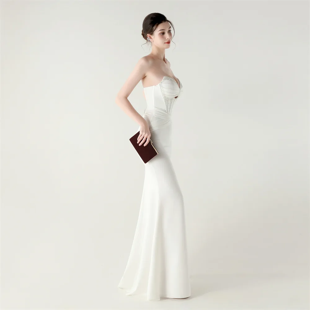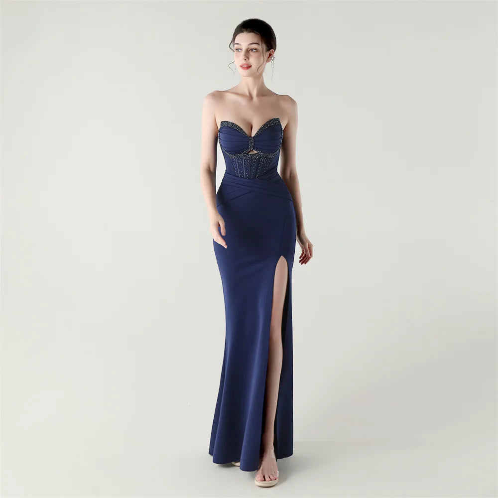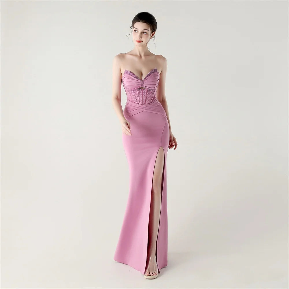 Step into timeless elegance with the Trend4us Luxe Strapless Corset Lace-Up Pleated Maxi Dress, a sculptural evening gown designed to captivate from every angle. Featuring a structured corset bodice with elegant boning, this strapless silhouette enhances the waist and supports the bust with couture precision.