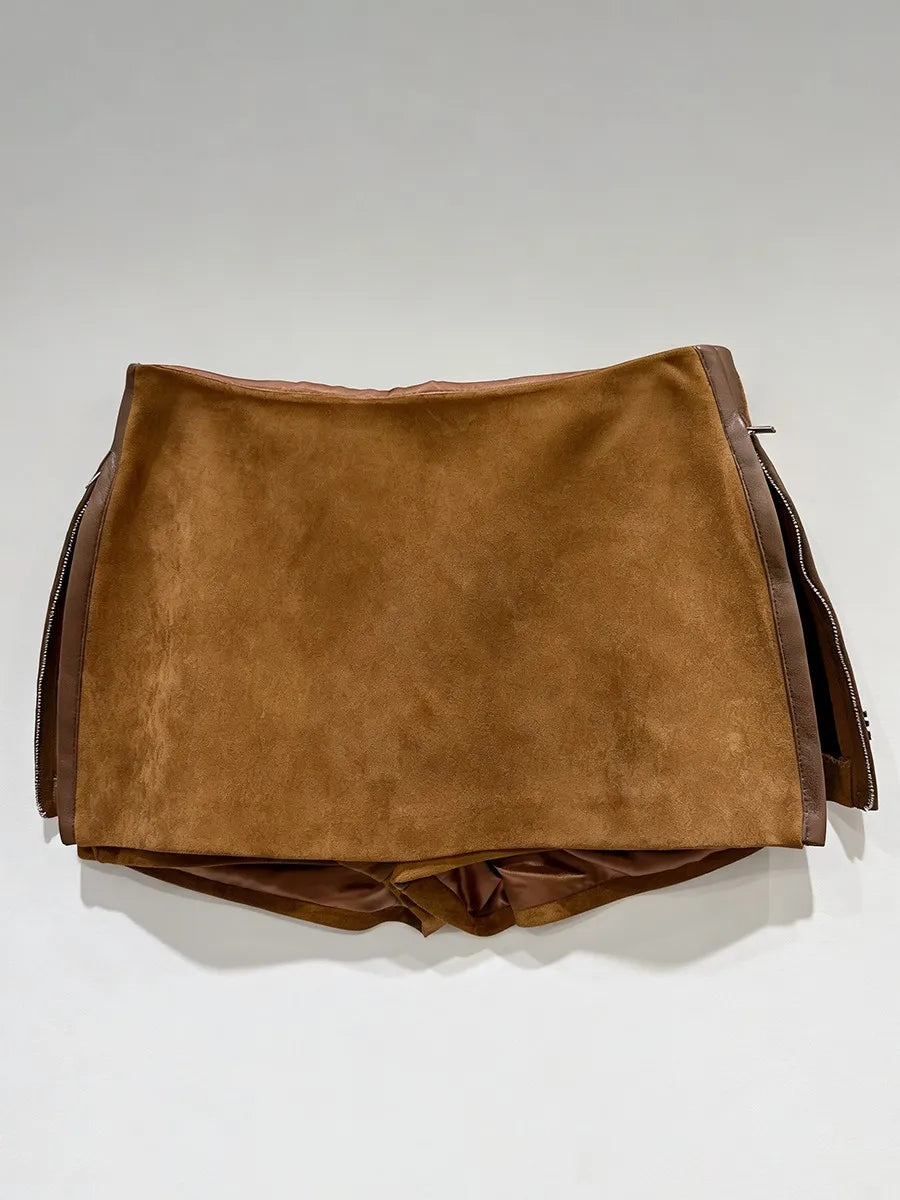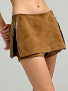 Trend4us Luxe Suede Zip-Slit Mini Skort