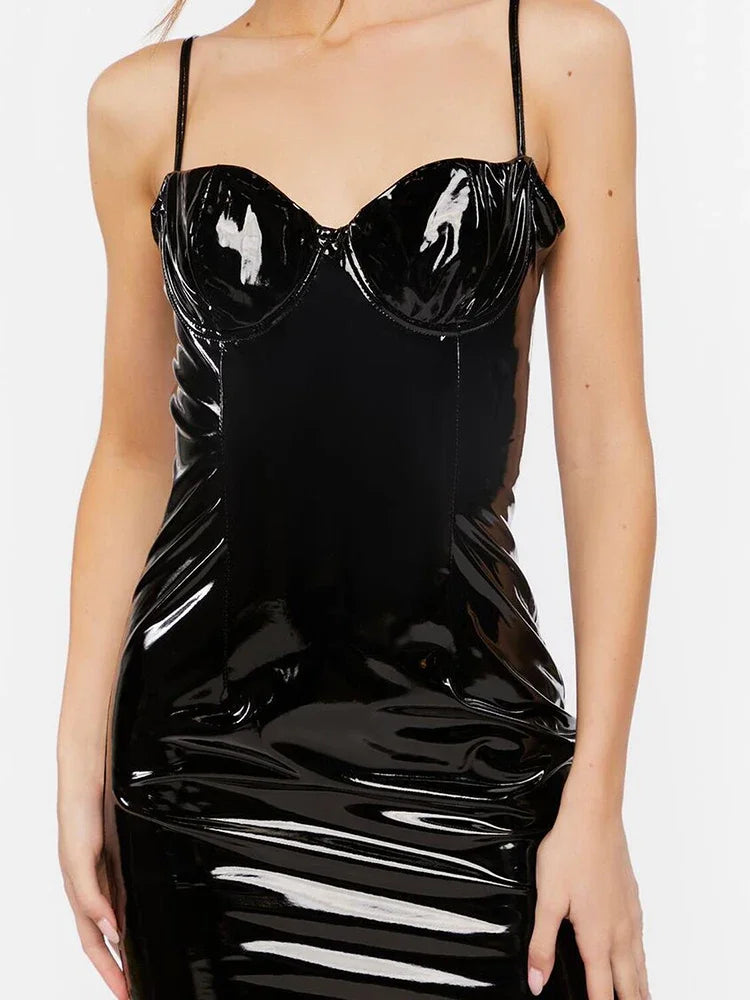 Trend4us Sleek Glossy Faux Leather Bustier Dress