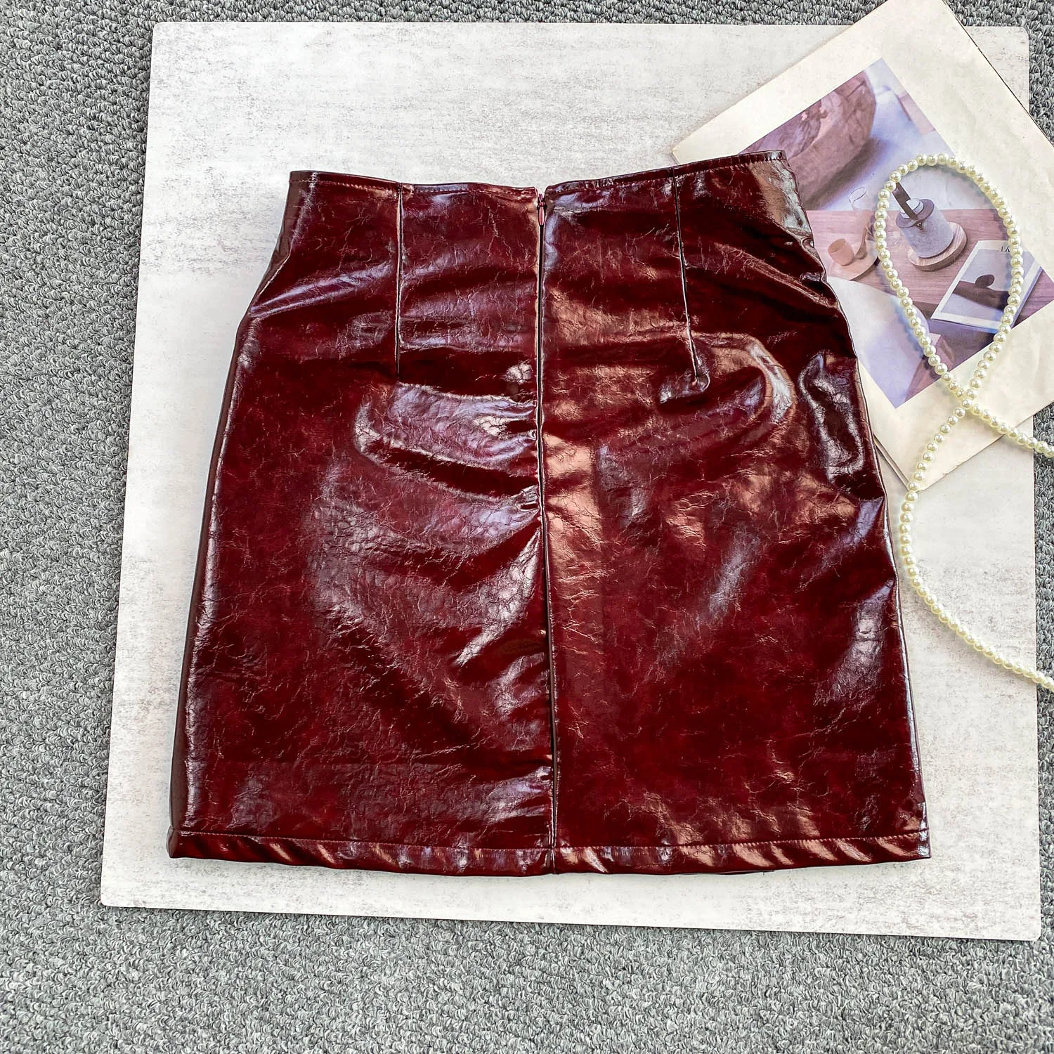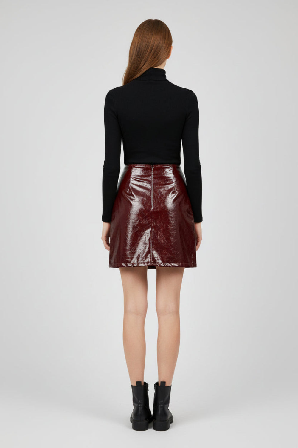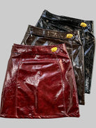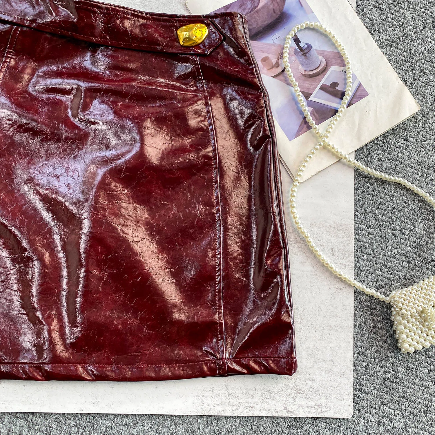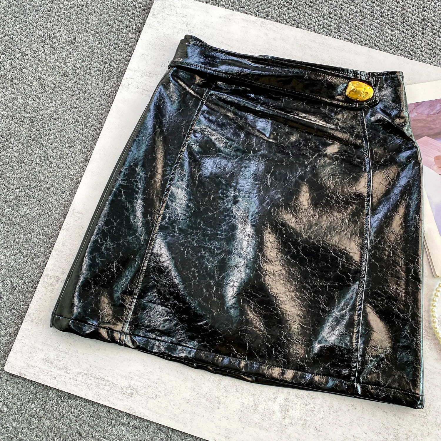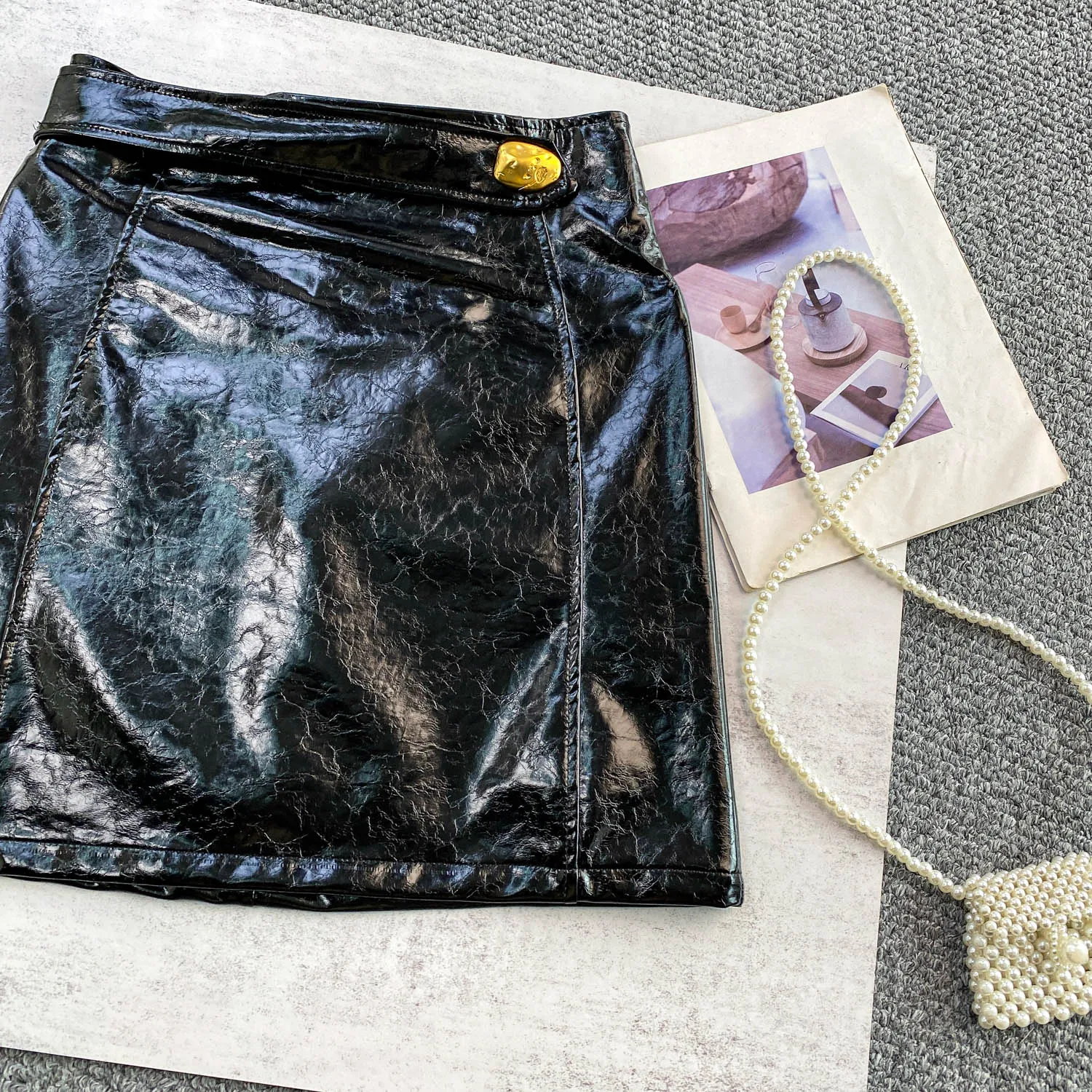 Elevate your wardrobe with the Trend4us Vintage Luxe Glossy Faux Leather Button Mini Skirt, a timeless statement piece infused with modern edge. Designed with a high-waisted silhouette and a rich high-shine faux leather finish, this skirt delivers structured elegance with a bold, fashion-forward attitude.
