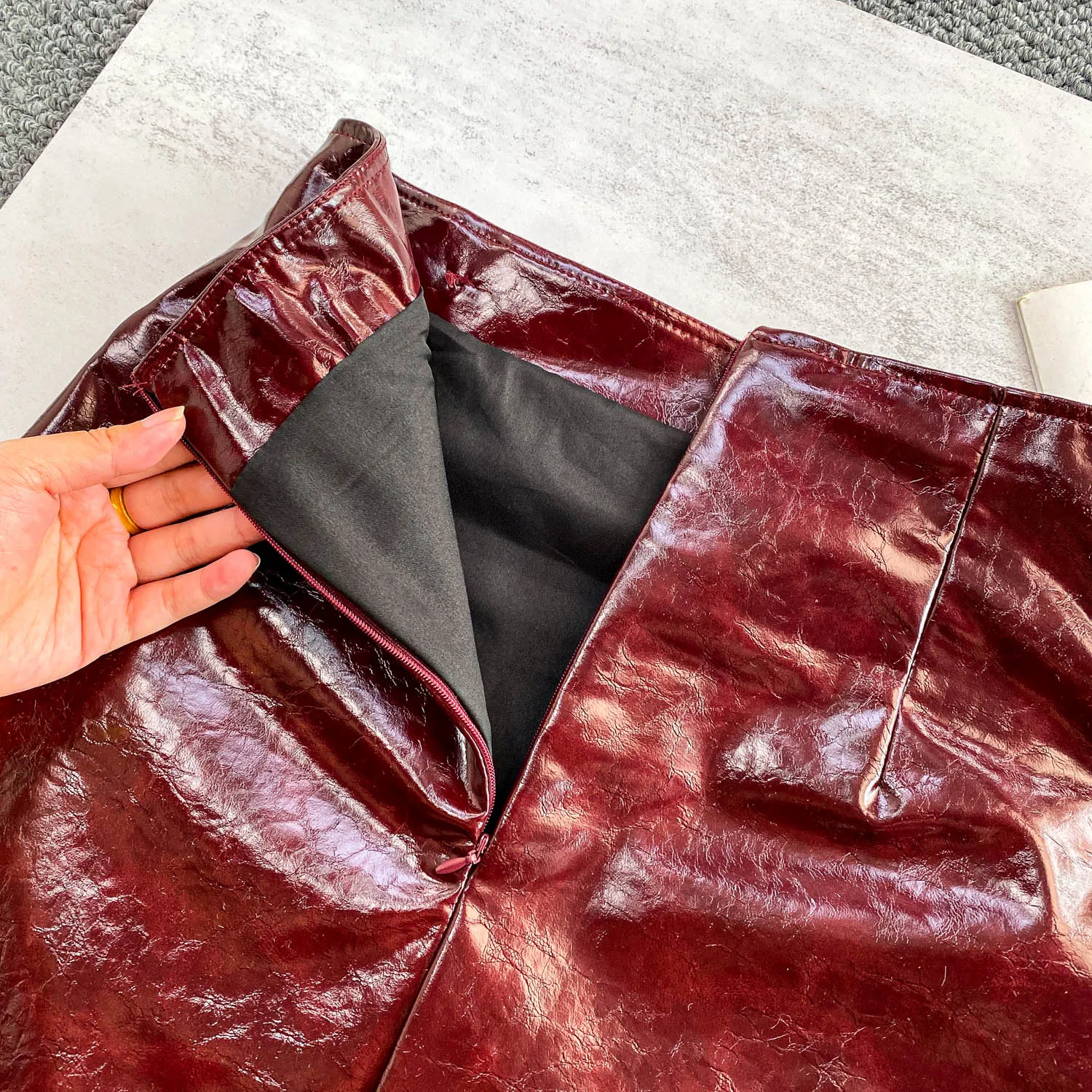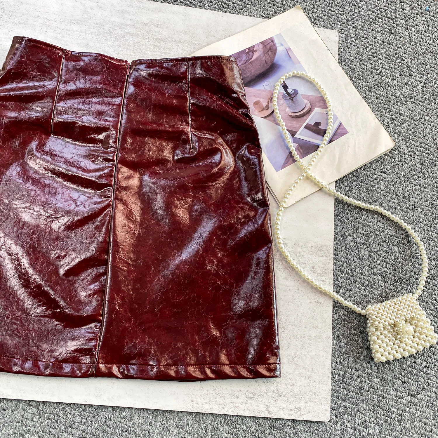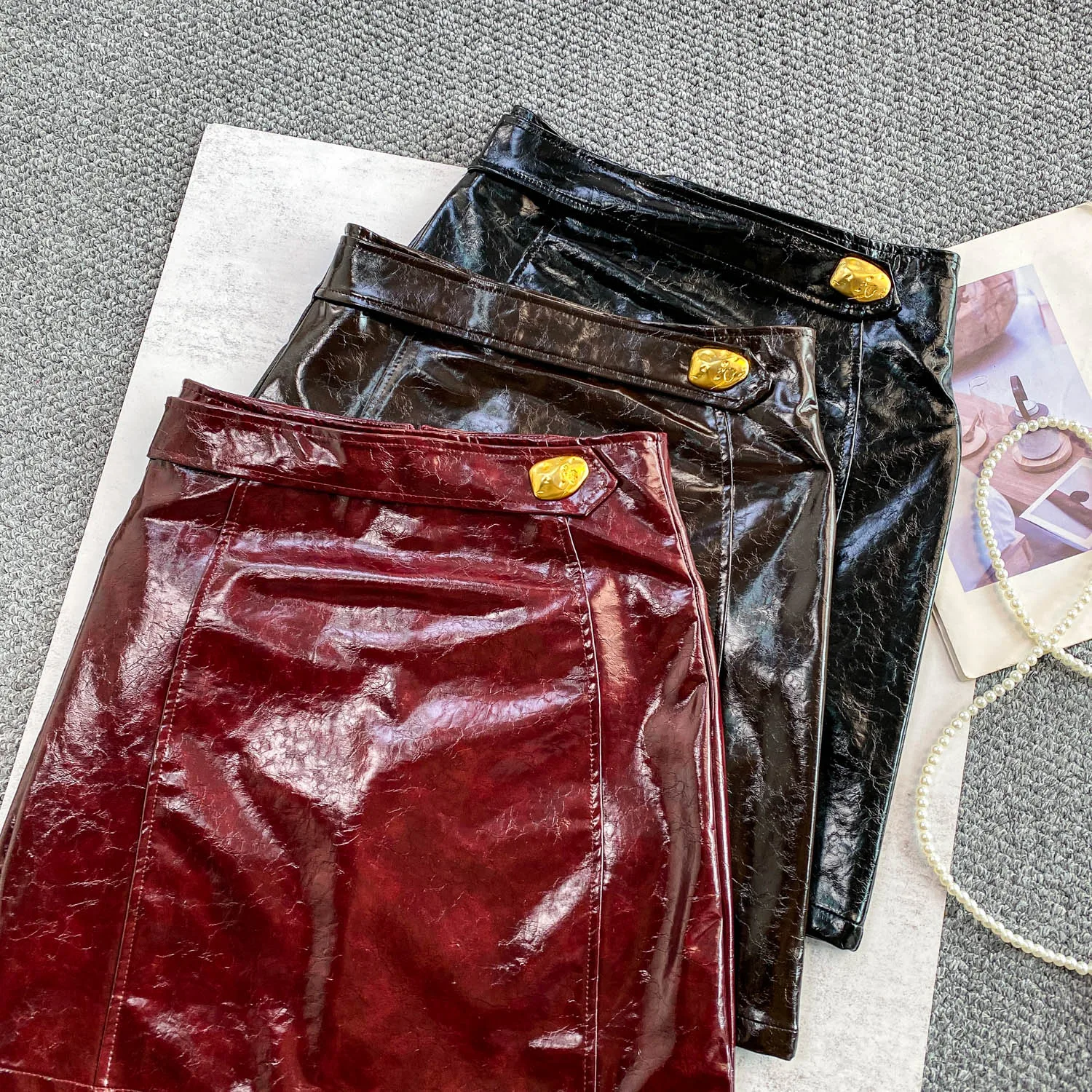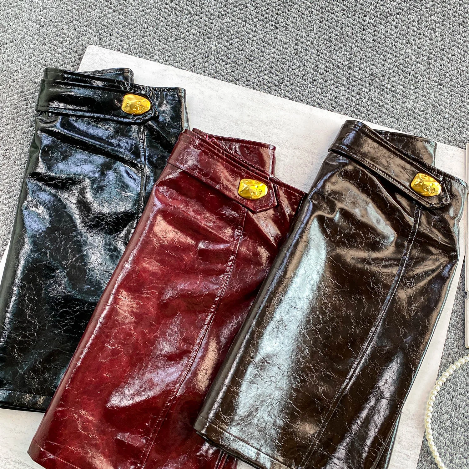 Elevate your wardrobe with the Trend4us Vintage Luxe Glossy Faux Leather Button Mini Skirt, a timeless statement piece infused with modern edge. Designed with a high-waisted silhouette and a rich high-shine faux leather finish, this skirt delivers structured elegance with a bold, fashion-forward attitude.