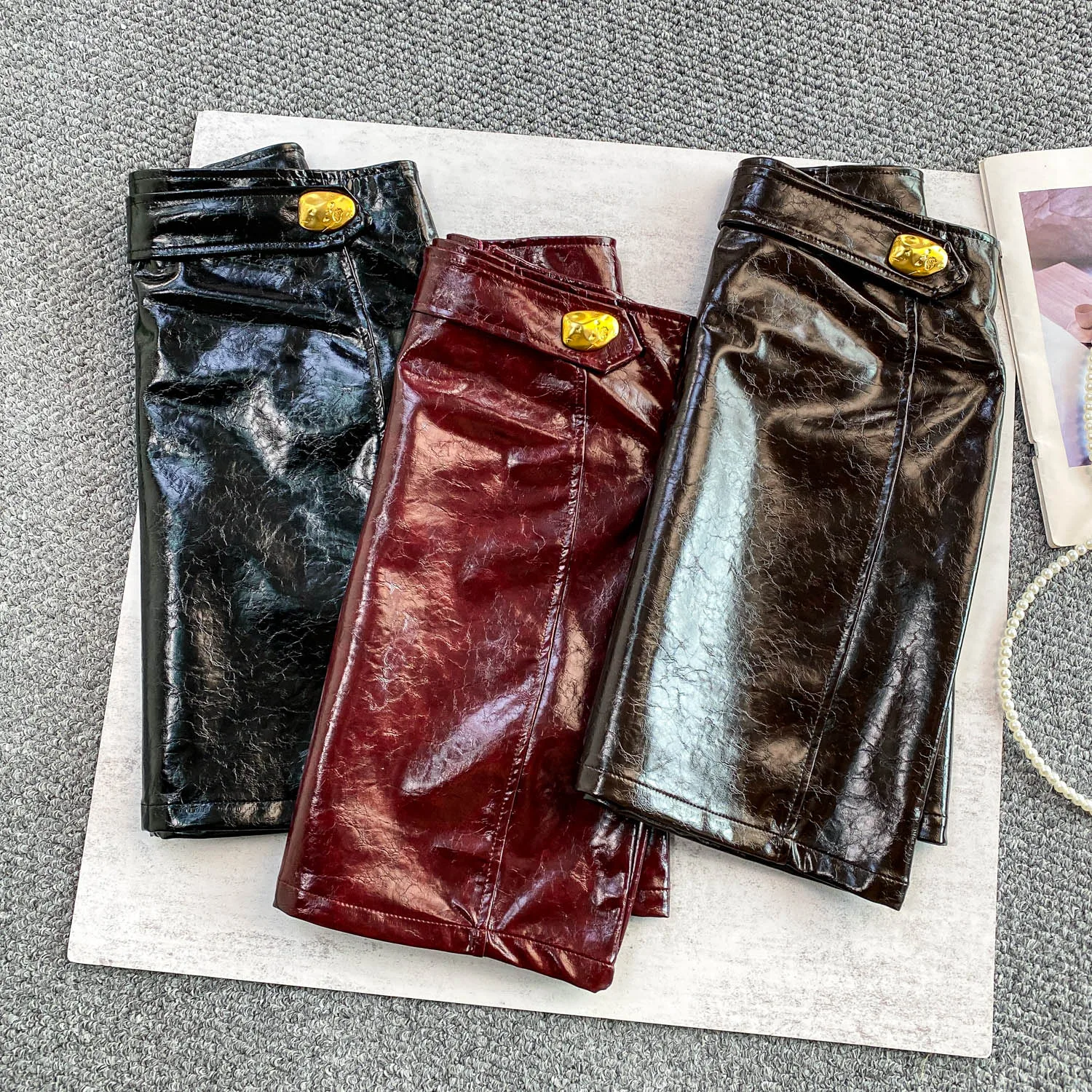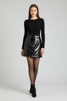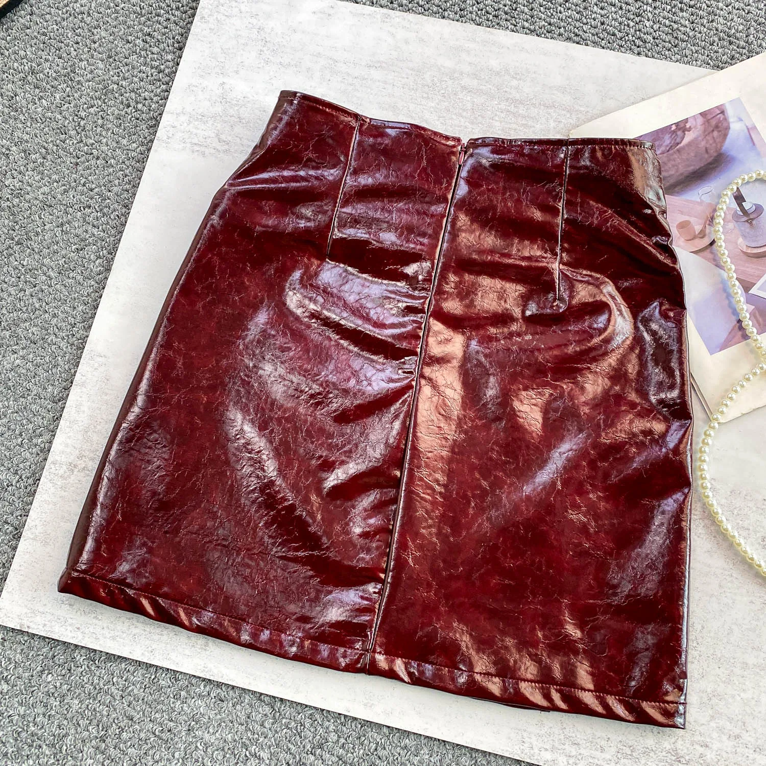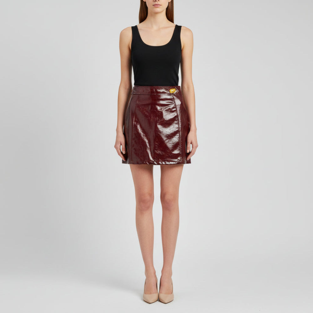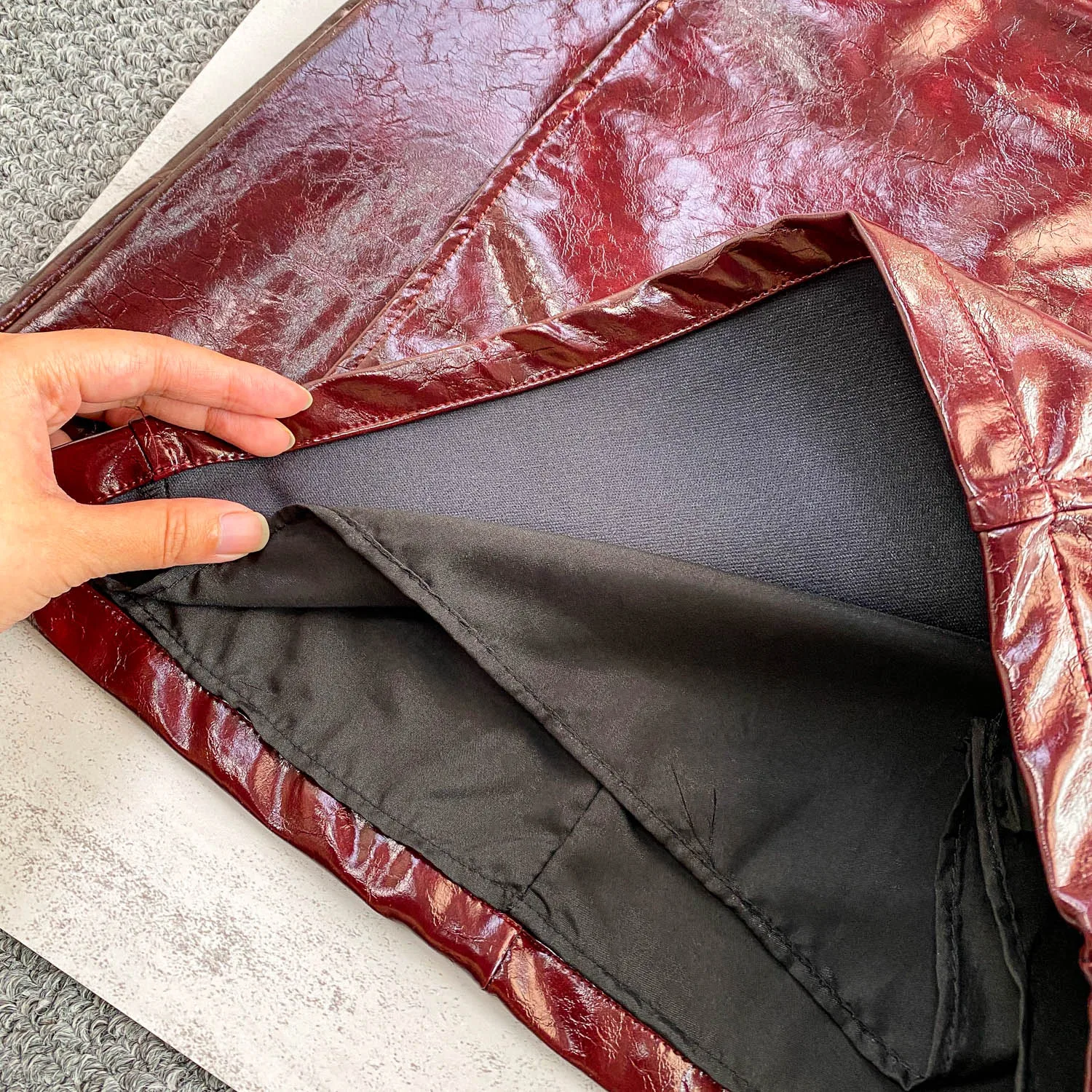 Elevate your wardrobe with the Trend4us Vintage Luxe Glossy Faux Leather Button Mini Skirt, a timeless statement piece infused with modern edge. Designed with a high-waisted silhouette and a rich high-shine faux leather finish, this skirt delivers structured elegance with a bold, fashion-forward attitude.
