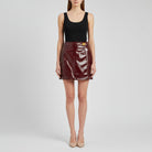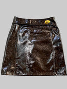 Trend4us Vintage Luxe Glossy Faux Leather Button Mini Skirt