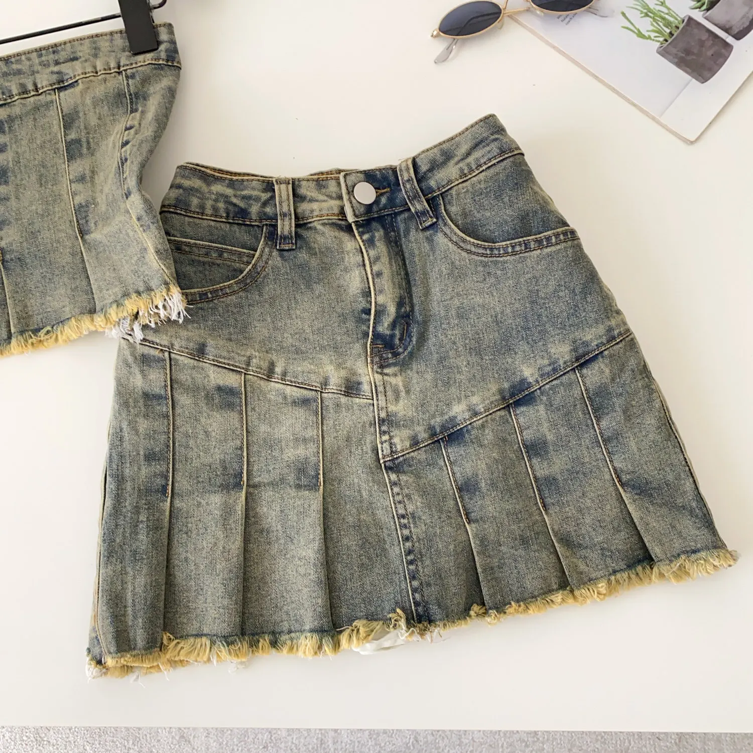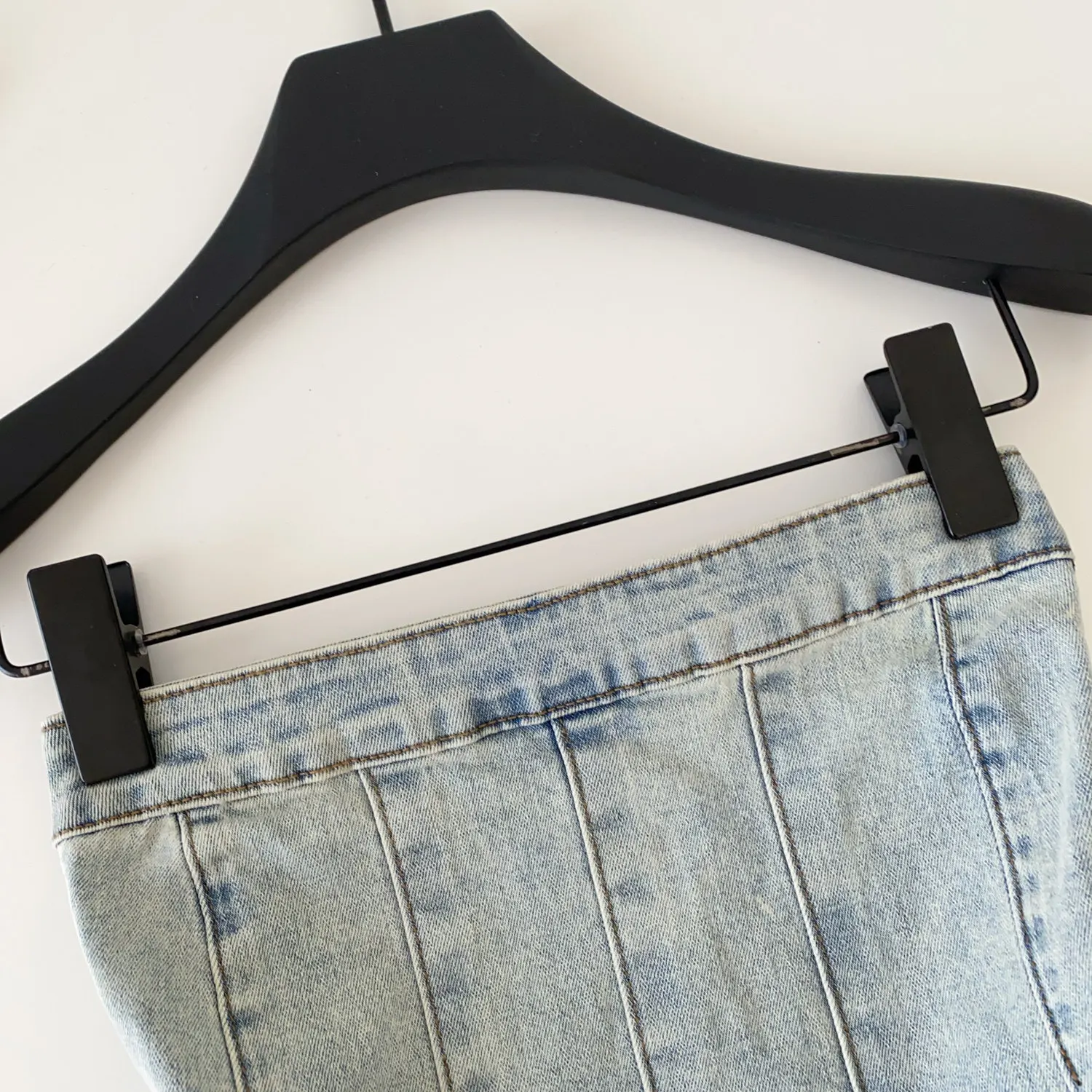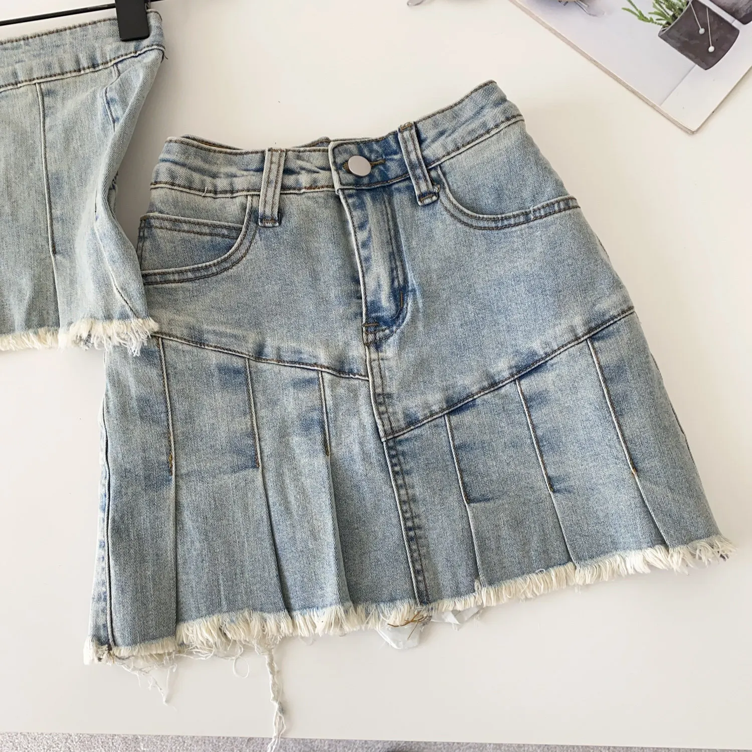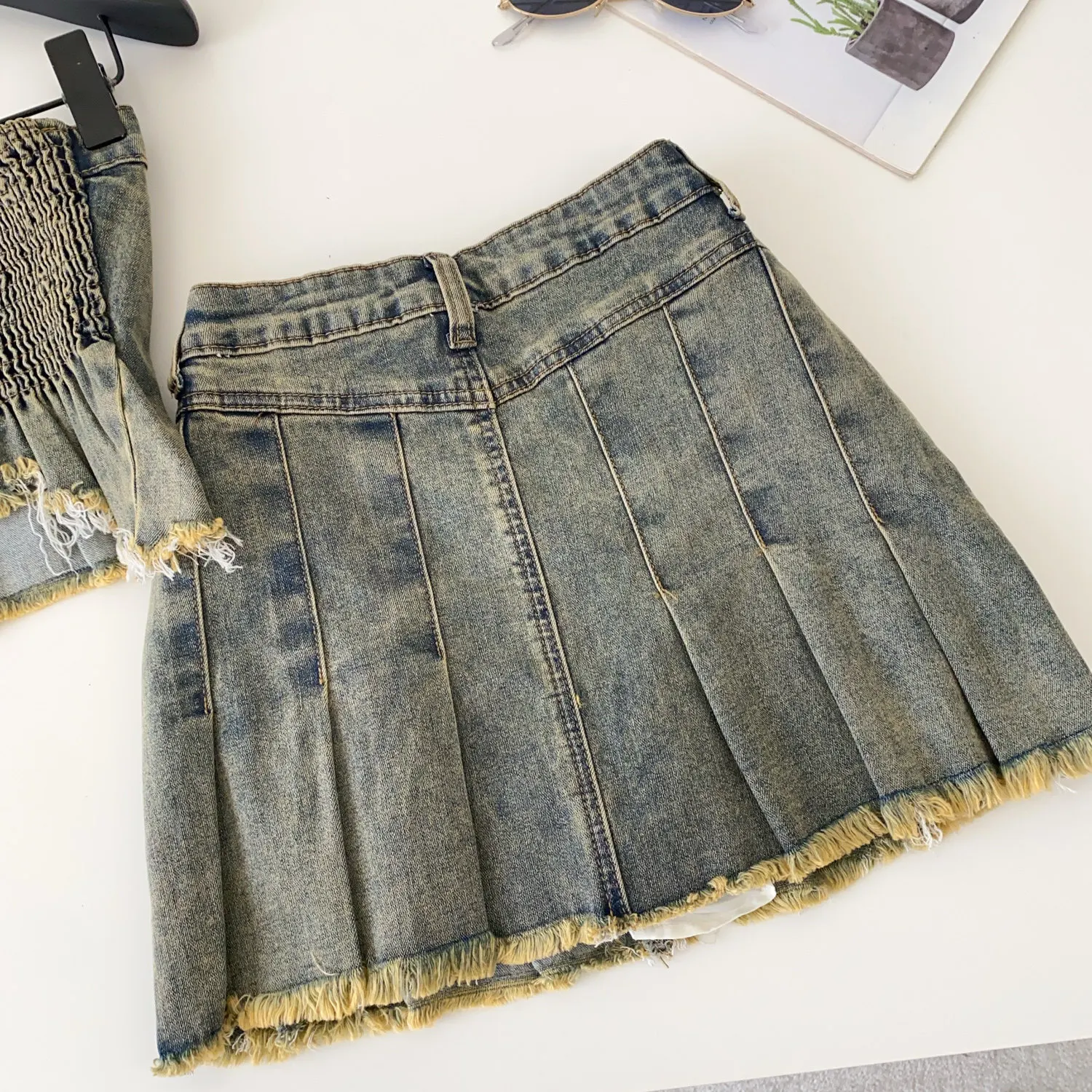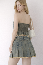 Trend4us Y2K Strapless Denim Tube Top & Pleated Mini Skirt Set