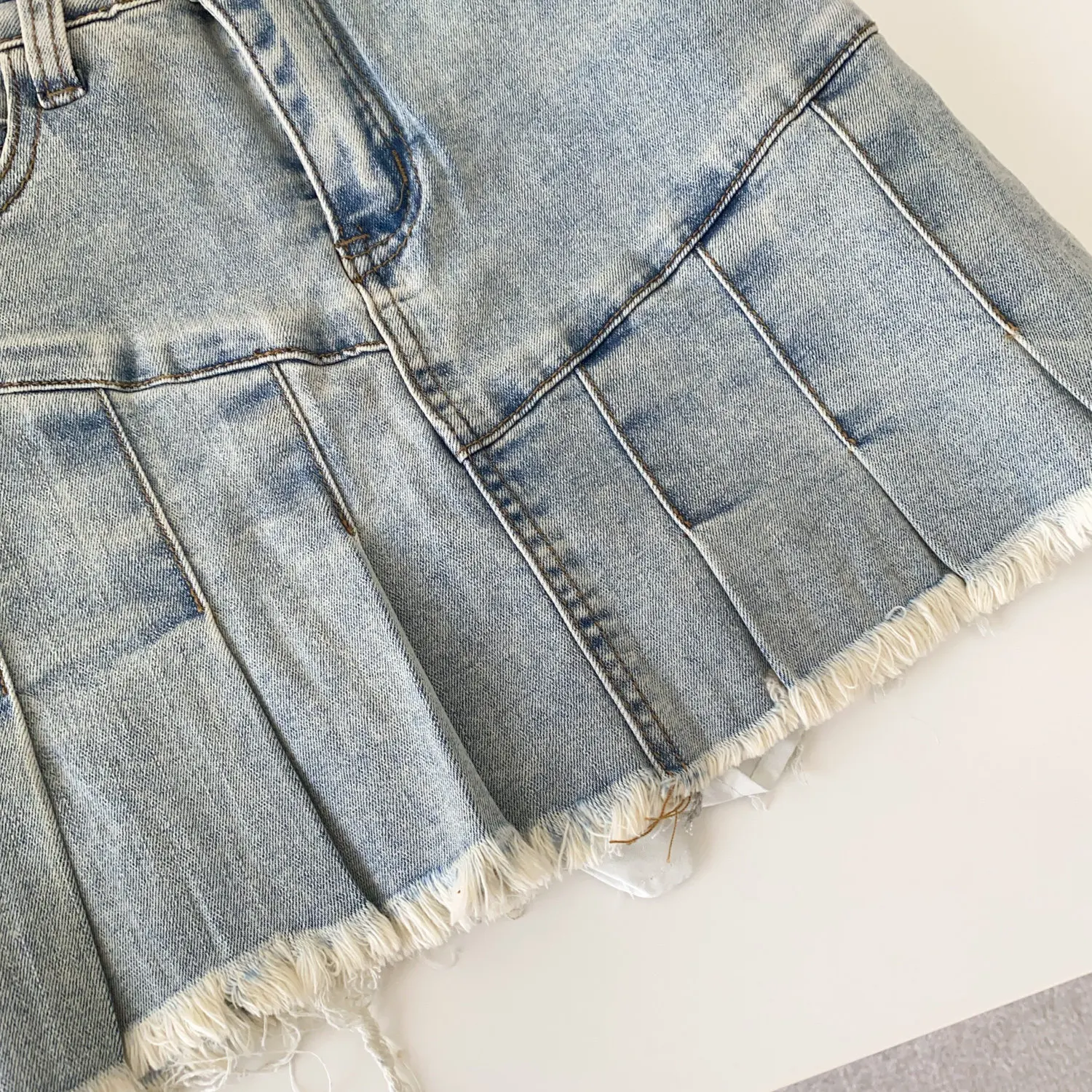 Serve early-2000s attitude with a modern streetwear edge. The Trend4us Y2K Strapless Denim Tube Top & Pleated Mini Skirt Set delivers a bold, throwback silhouette with elevated details. The strapless tube top features a smocked back for a secure, body-hugging fit, while the pleated mini skirt adds movement and attitude with a raw-hem finish.