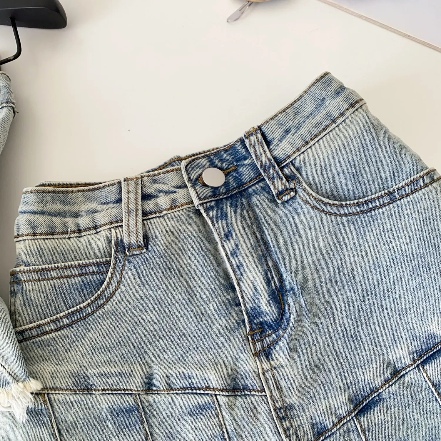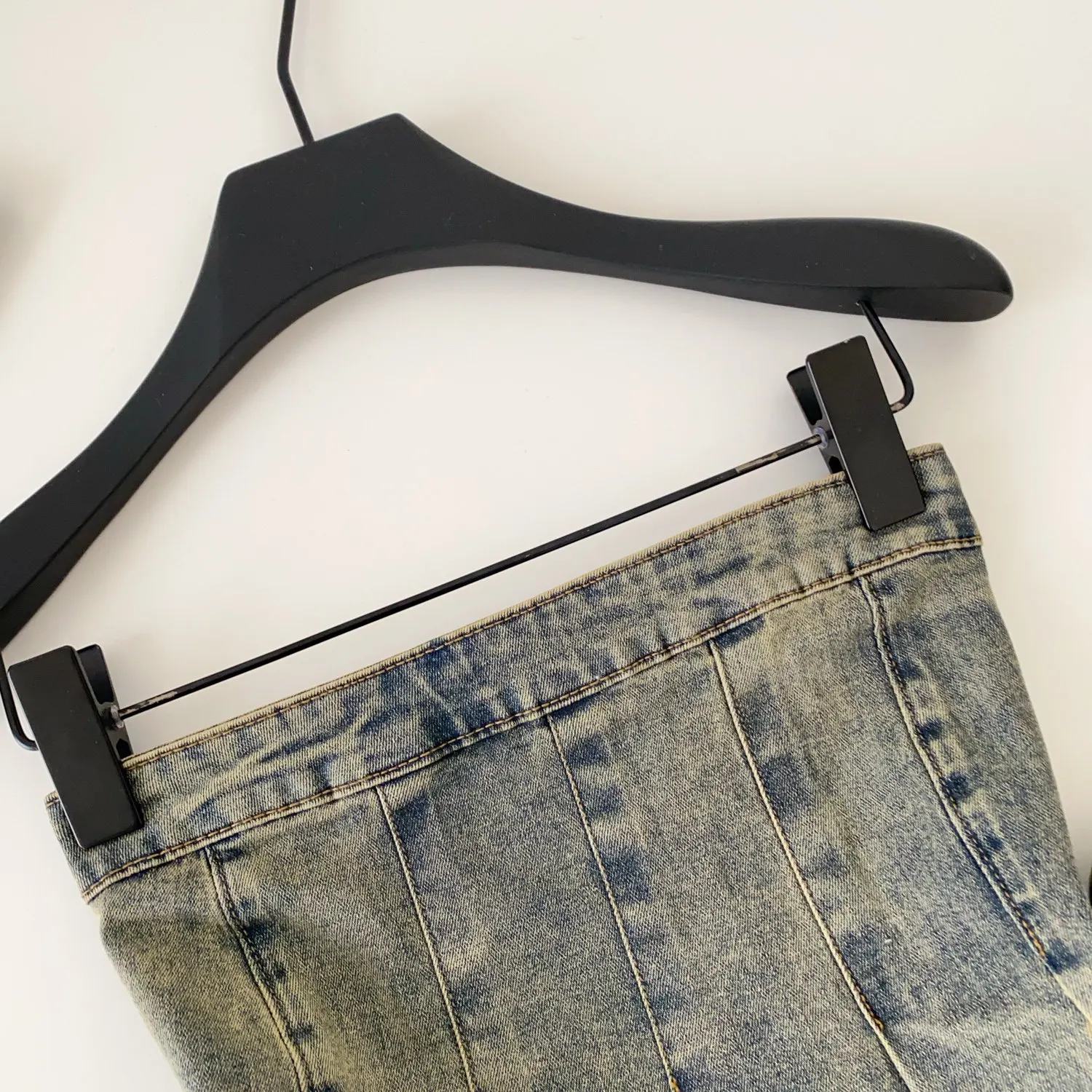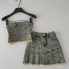 Designed in a vintage-wash denim, this set is perfect for festival looks, street edits, Y2K nights out, and casual summer styling. Pair it with chunky sneakers, knee-high boots, or platform heels to complete the look.