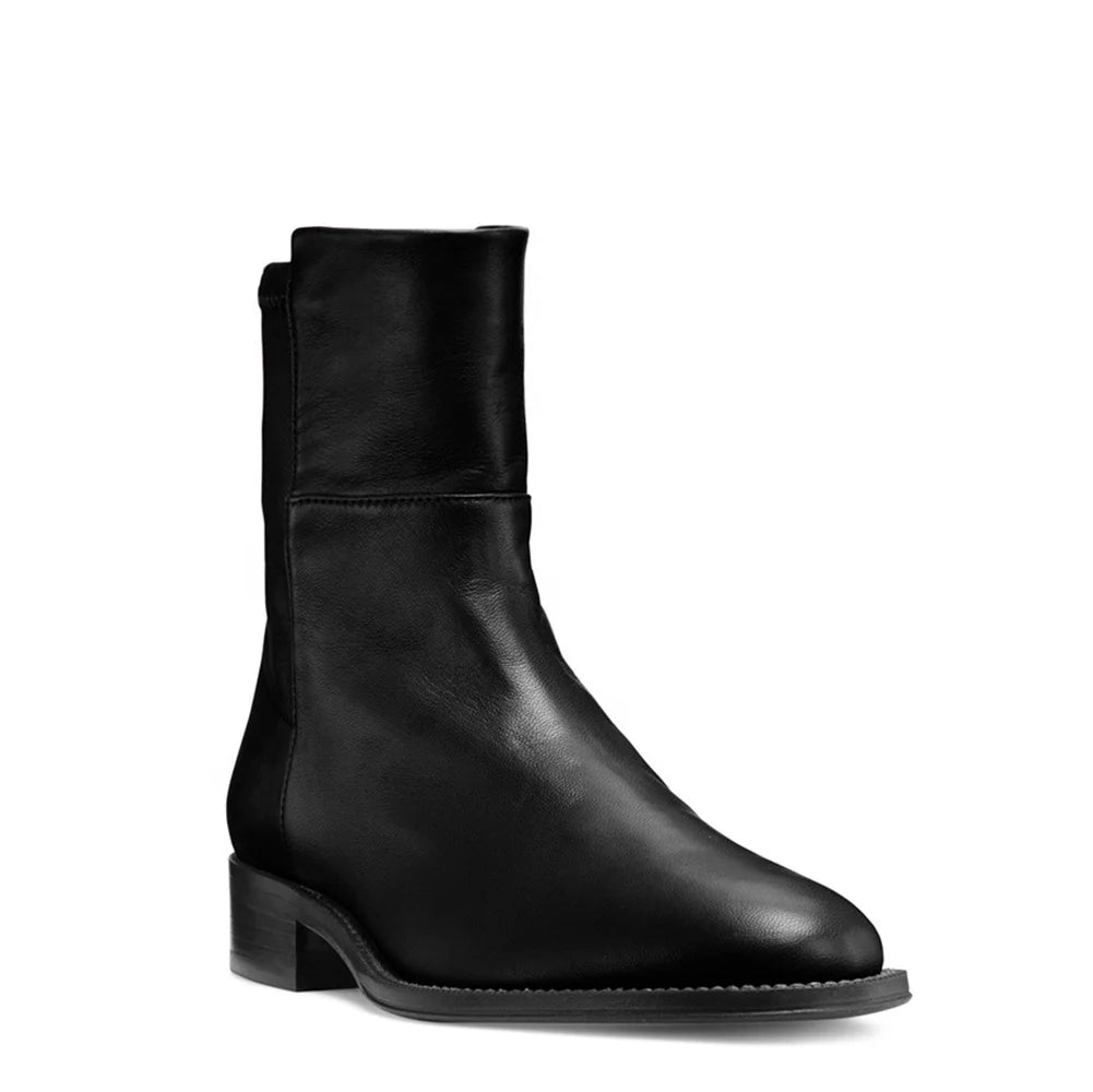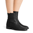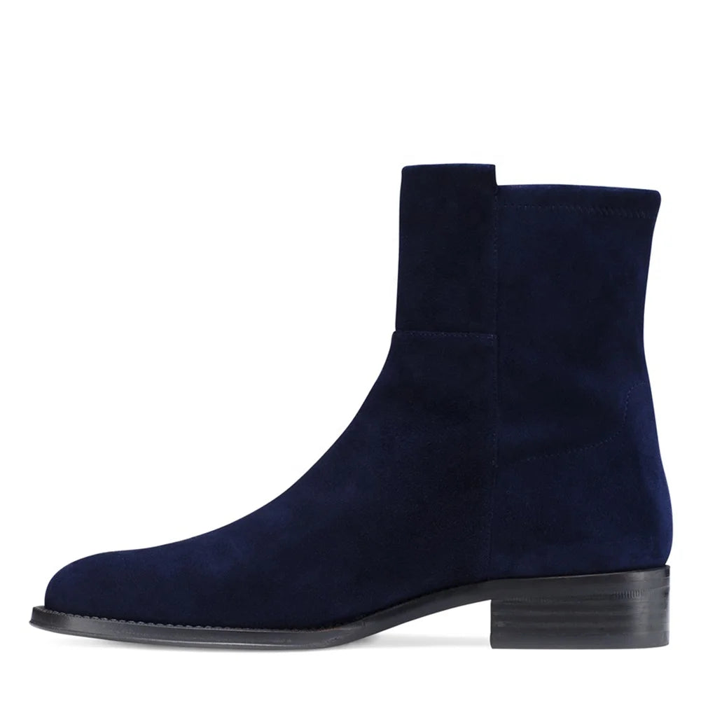 With a smooth, streamlined design and a low stacked heel, these ankle boots are the ideal choice for casual outings, office wear, or evening events. The side zip closure ensures easy on and off, while the cushioned insole provides all-day comfort. Available in classic black leather and elegant navy suede, these boots seamlessly blend timeless style with contemporary elegance.
