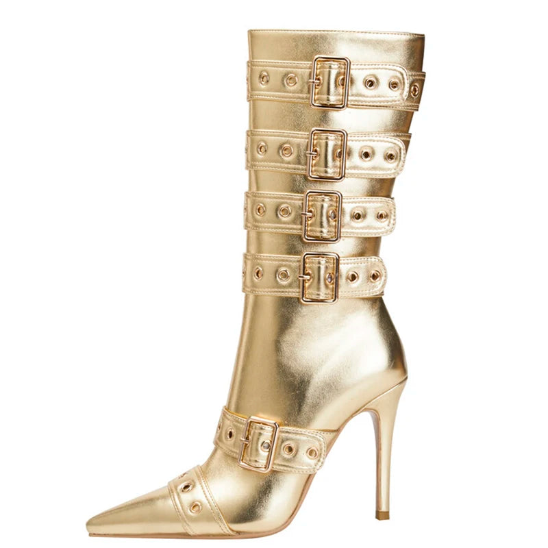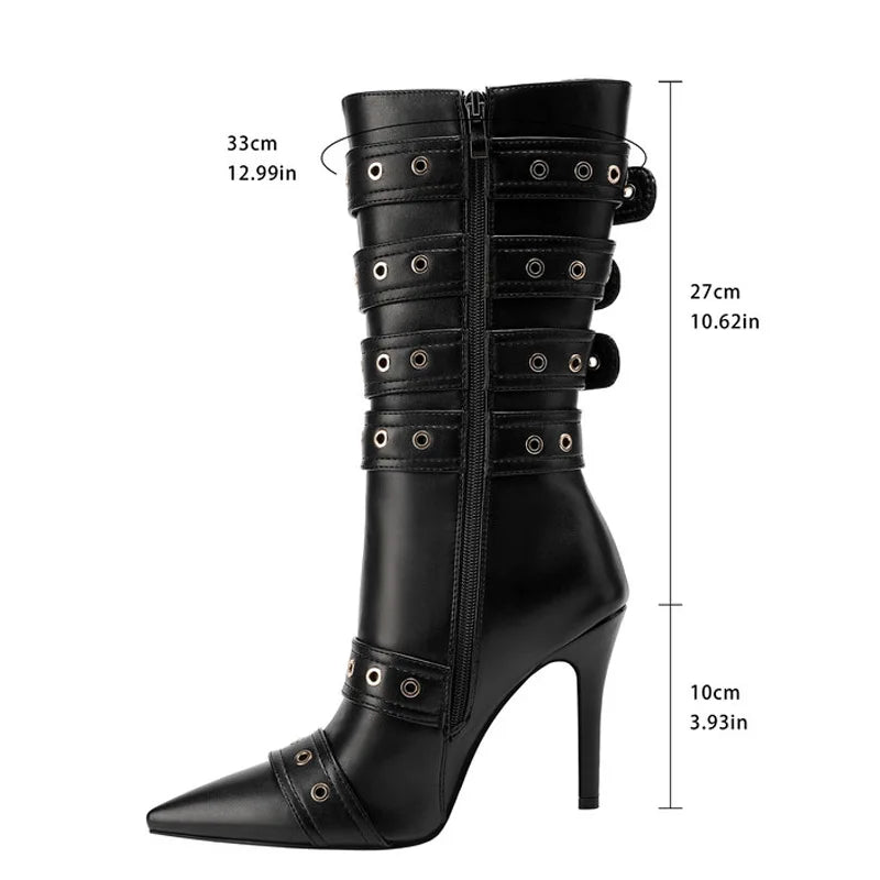 Trend4us Multi-Buckle Stiletto Mid-Calf Boots