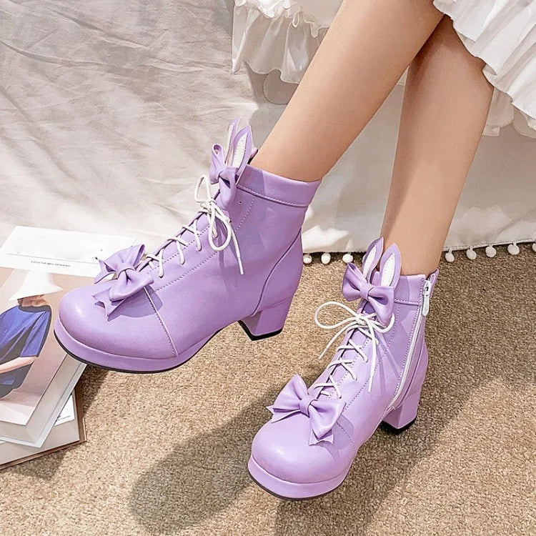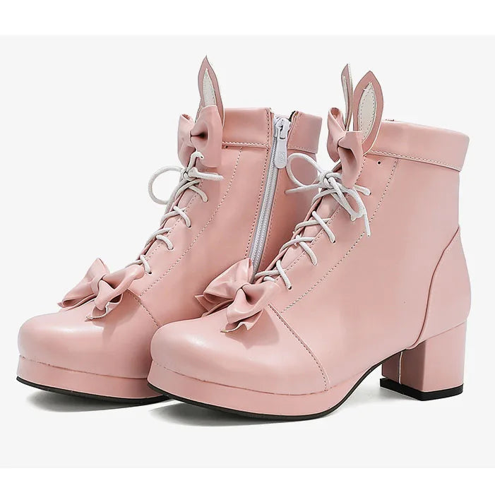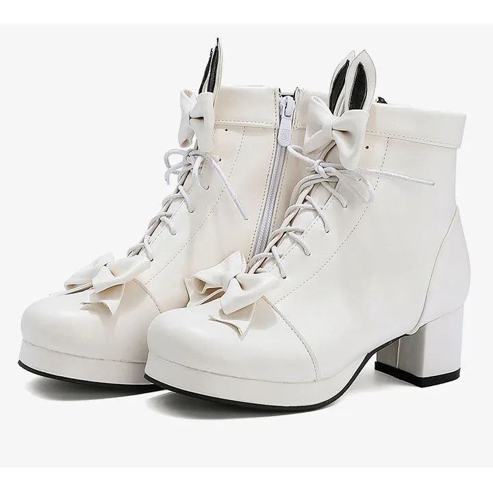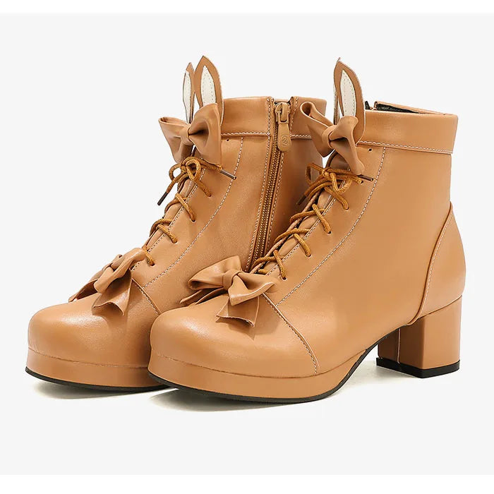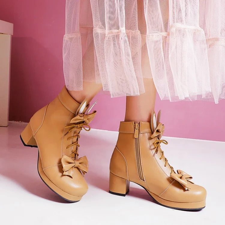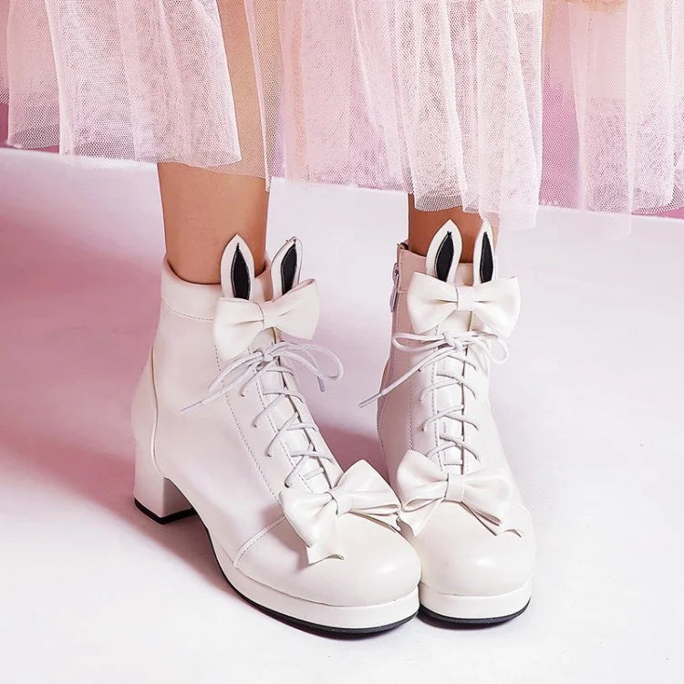 Trend4us Bunny Bow Lace-Up Ankle Boots