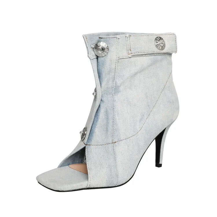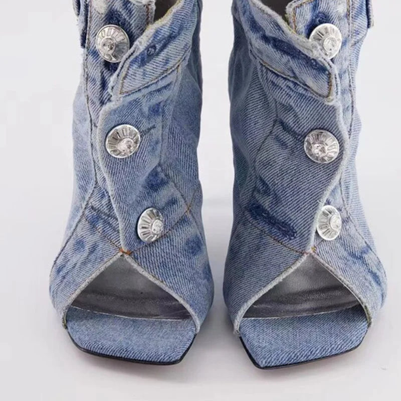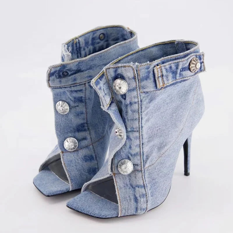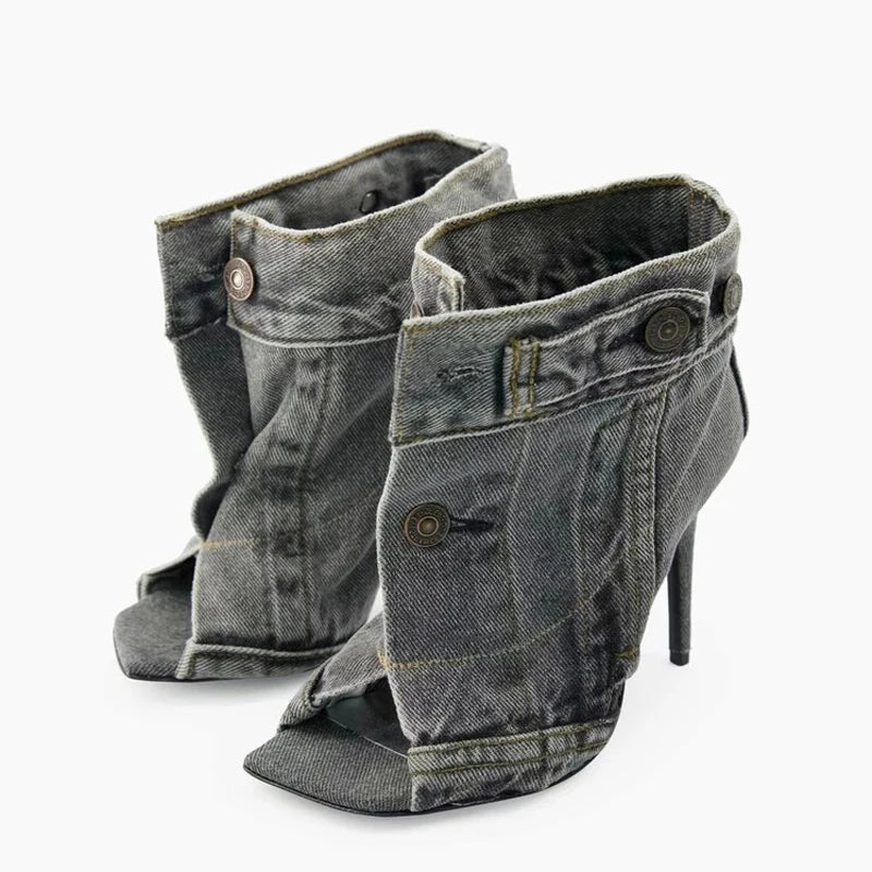 Trend4us Modern Distressed Open-Toe Denim Heels