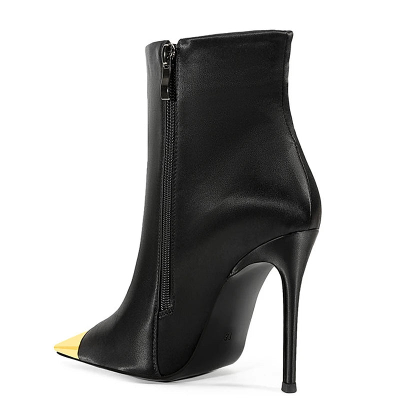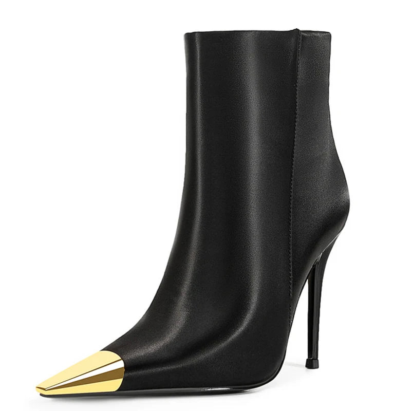 Trend4us Gold Cap Pointed Stiletto Ankle Boots