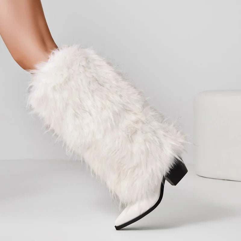 Trend4us Luxe Furry Stiletto Fluffy Knee-High Boots