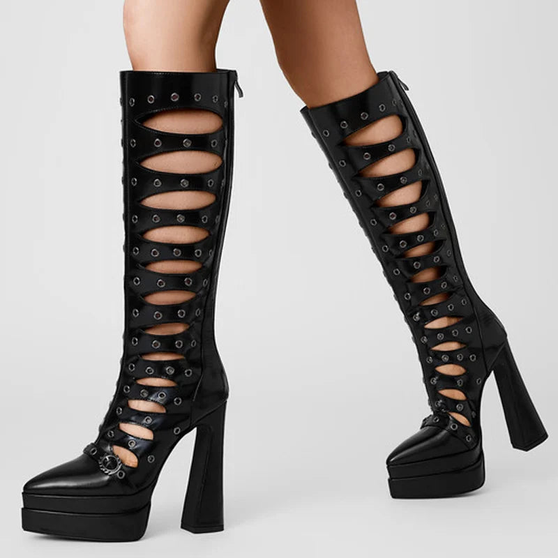 Trend4us Cutout Platform Chunky Knee-High Boots