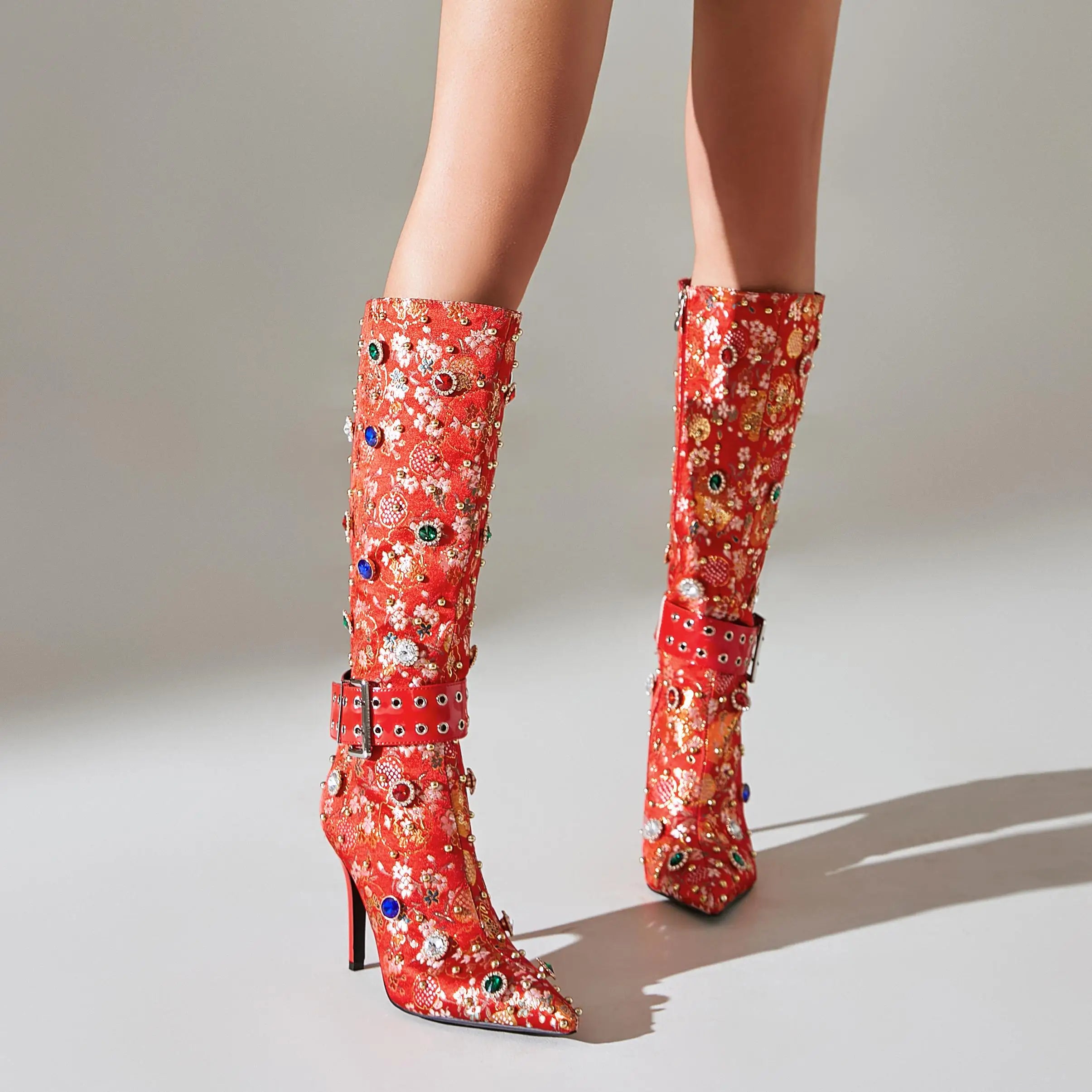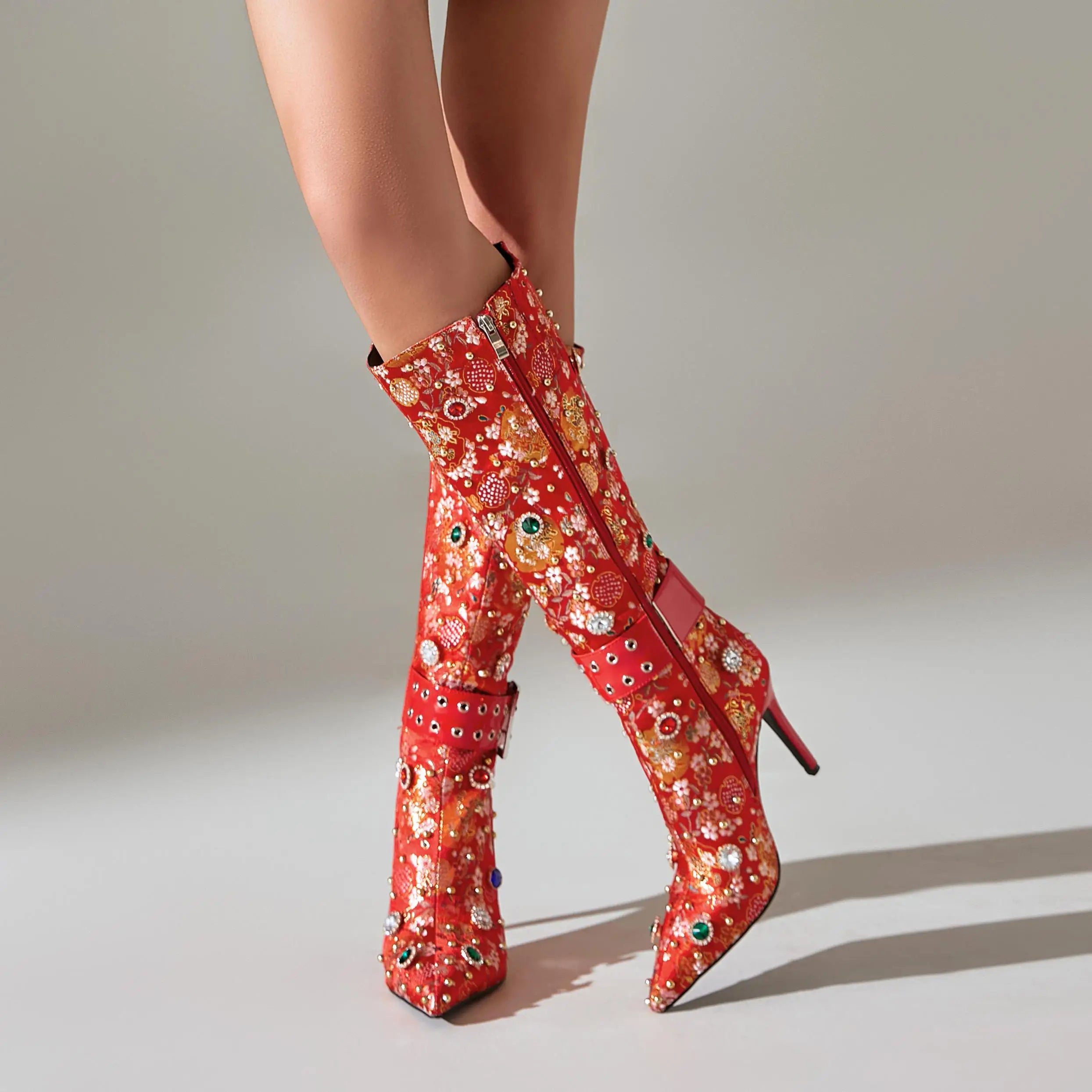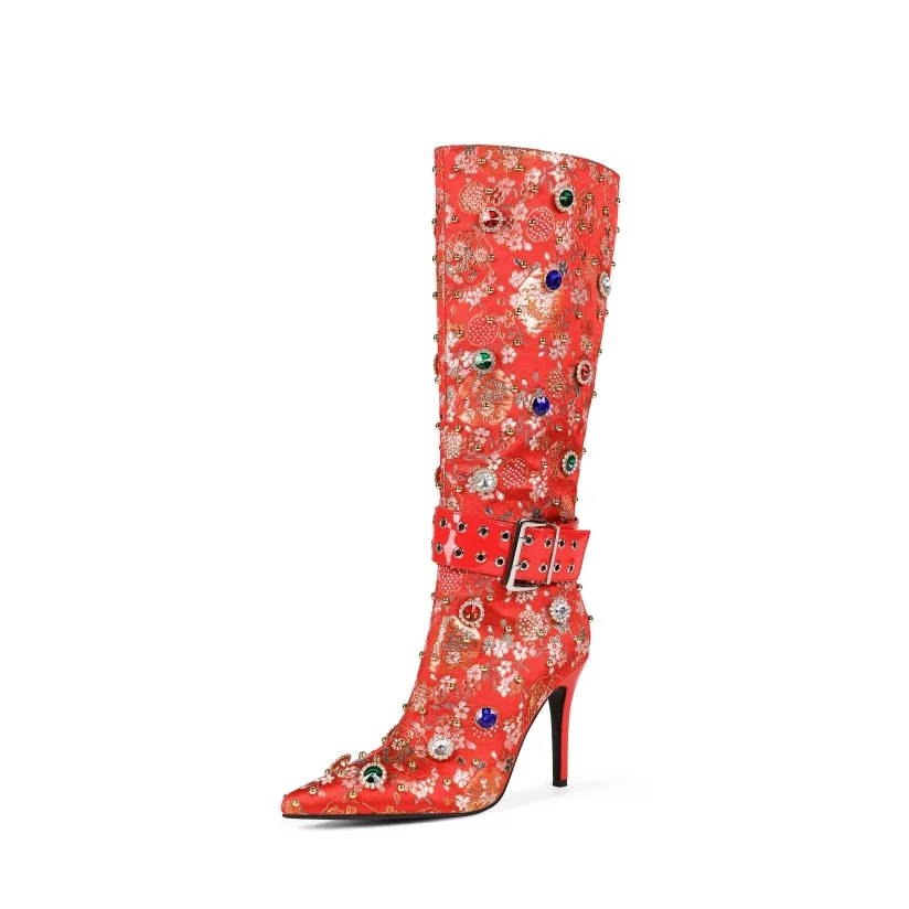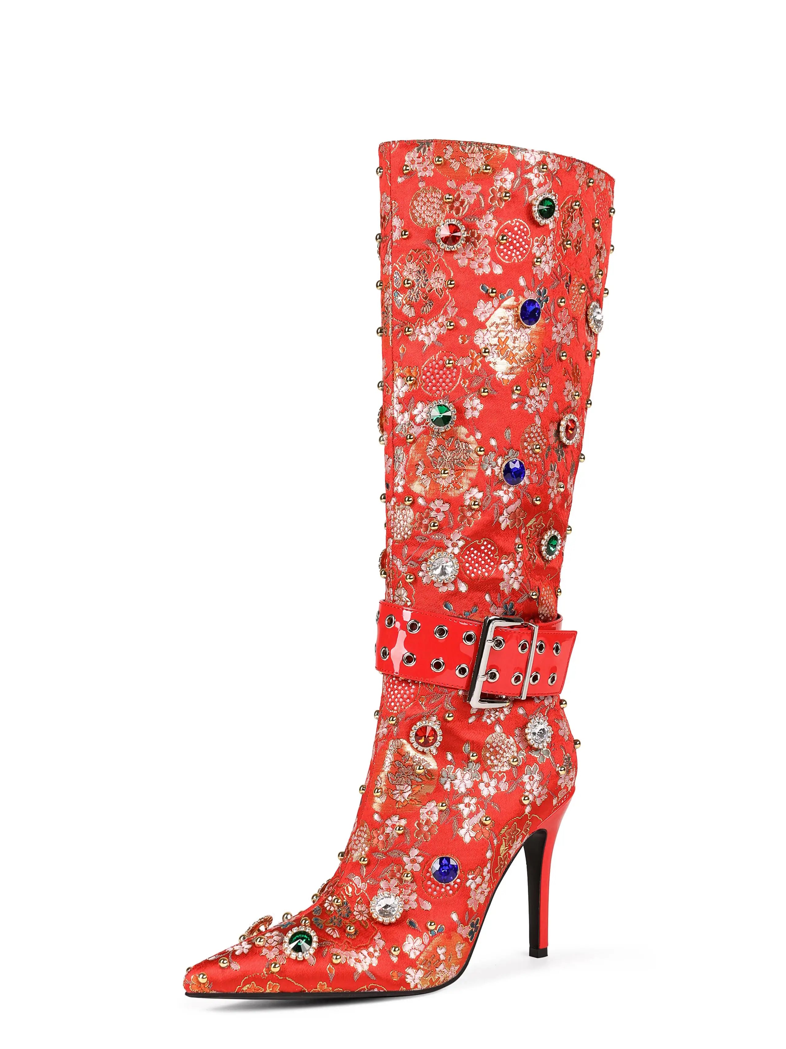 Trend4us Luxe Embellished Brocade Boots