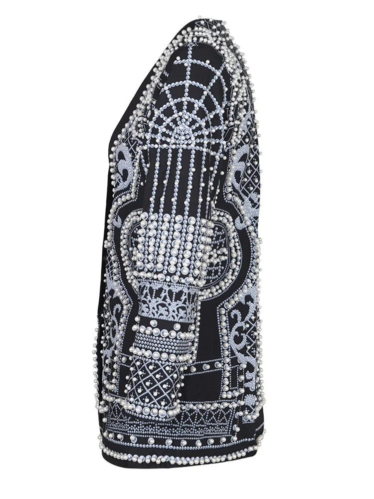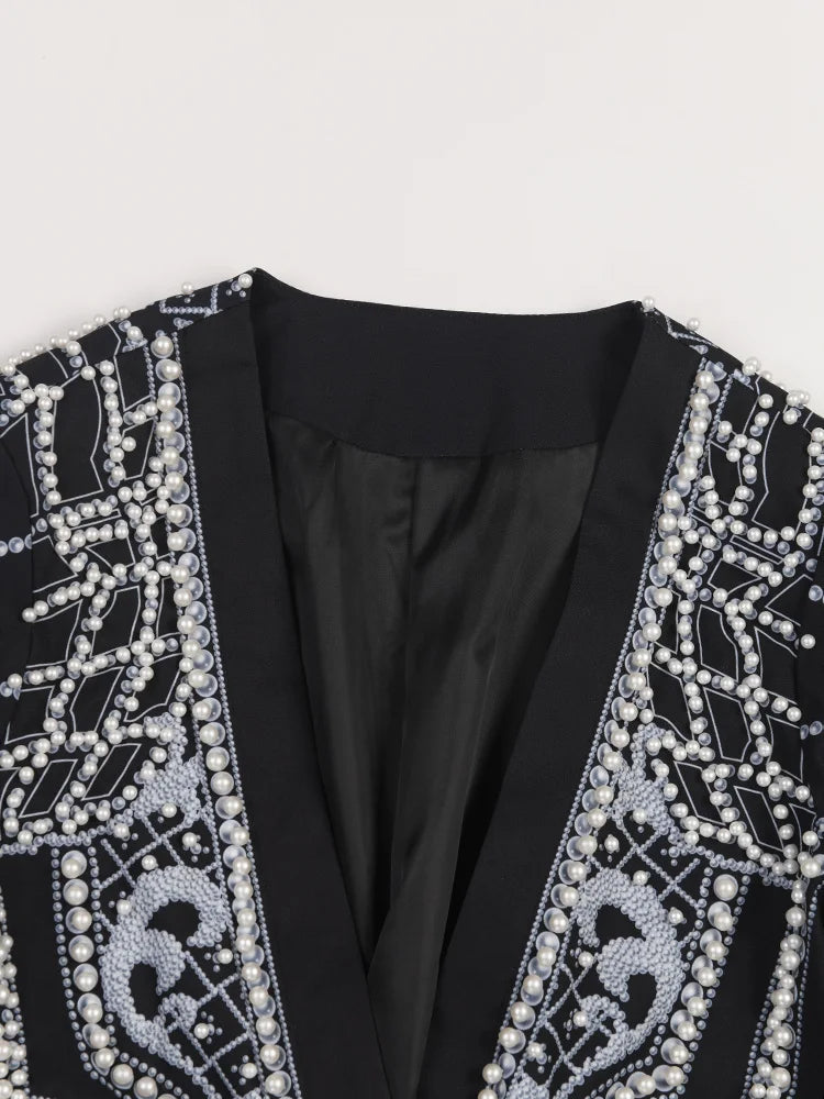 Trend4us Luxury Pearl-Embellished Blazer Jacket