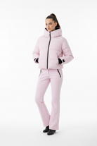 • Matching high-waisted flared snow pants with zipper fly