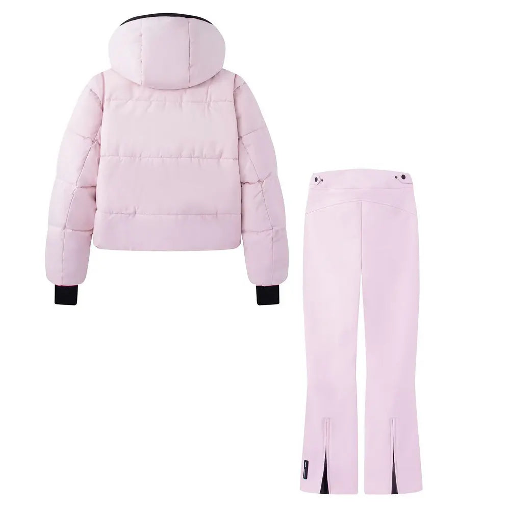 This isn't just ski wear—it's your statement on the slopes. The padded insulation keeps you warm in freezing temperatures, while the coordinated design creates a sleek, put-together look that sets you apart. The flared pants add a fashion-forward touch that's both flattering and functional, working beautifully with ski boots while creating an elongated silhouette. The hooded jacket provides versatile protection you can adjust as conditions change, and the high-waisted pants ensure no gaps when you're bending and moving.