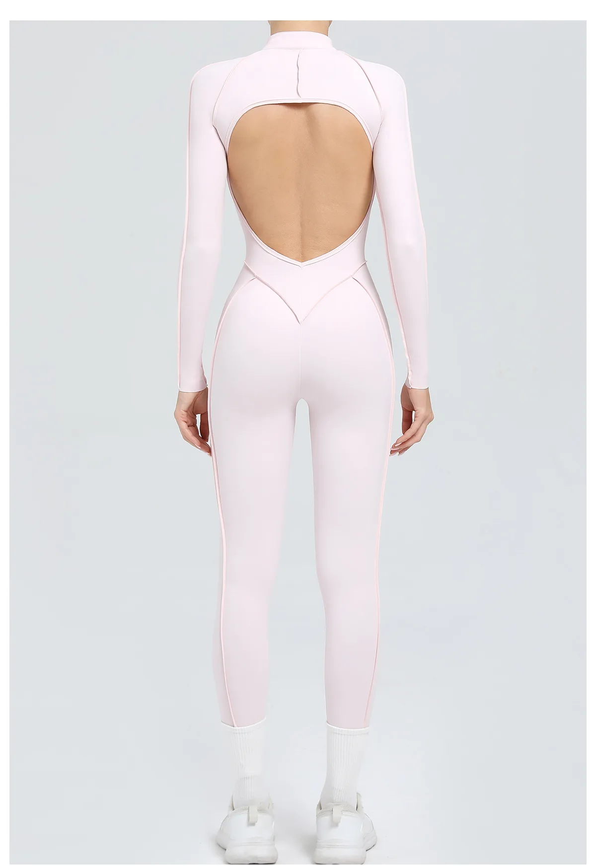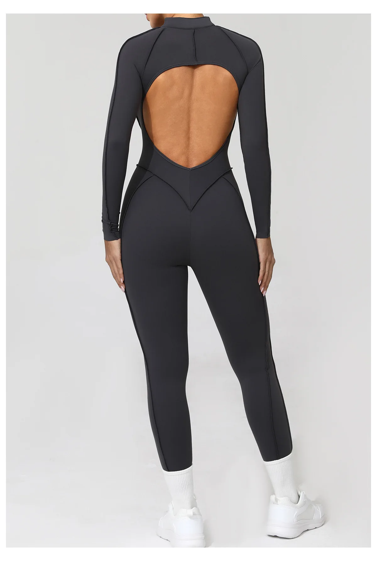Trend4us Backless Long-Sleeve Zip-Up Activewear Jumpsuit