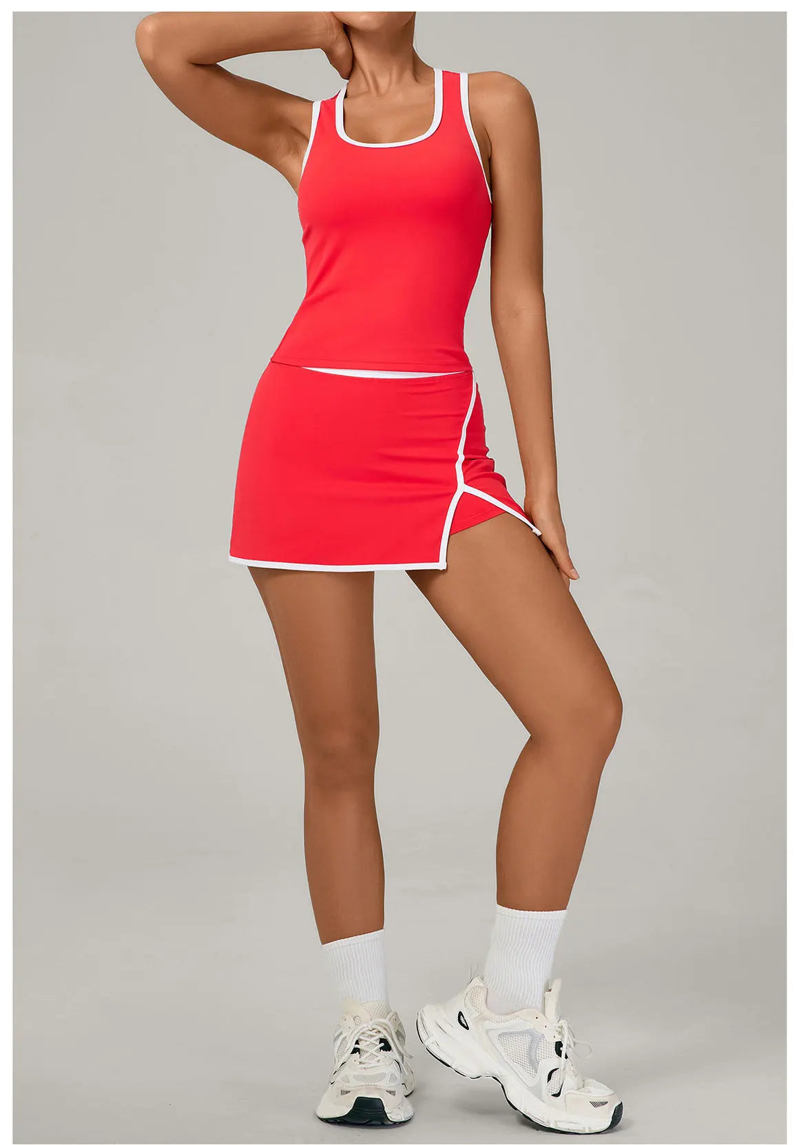 Trend4us Contrast Trim Tennis Tank & Skirt Set