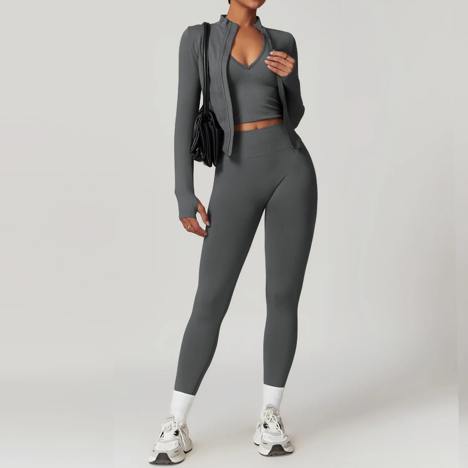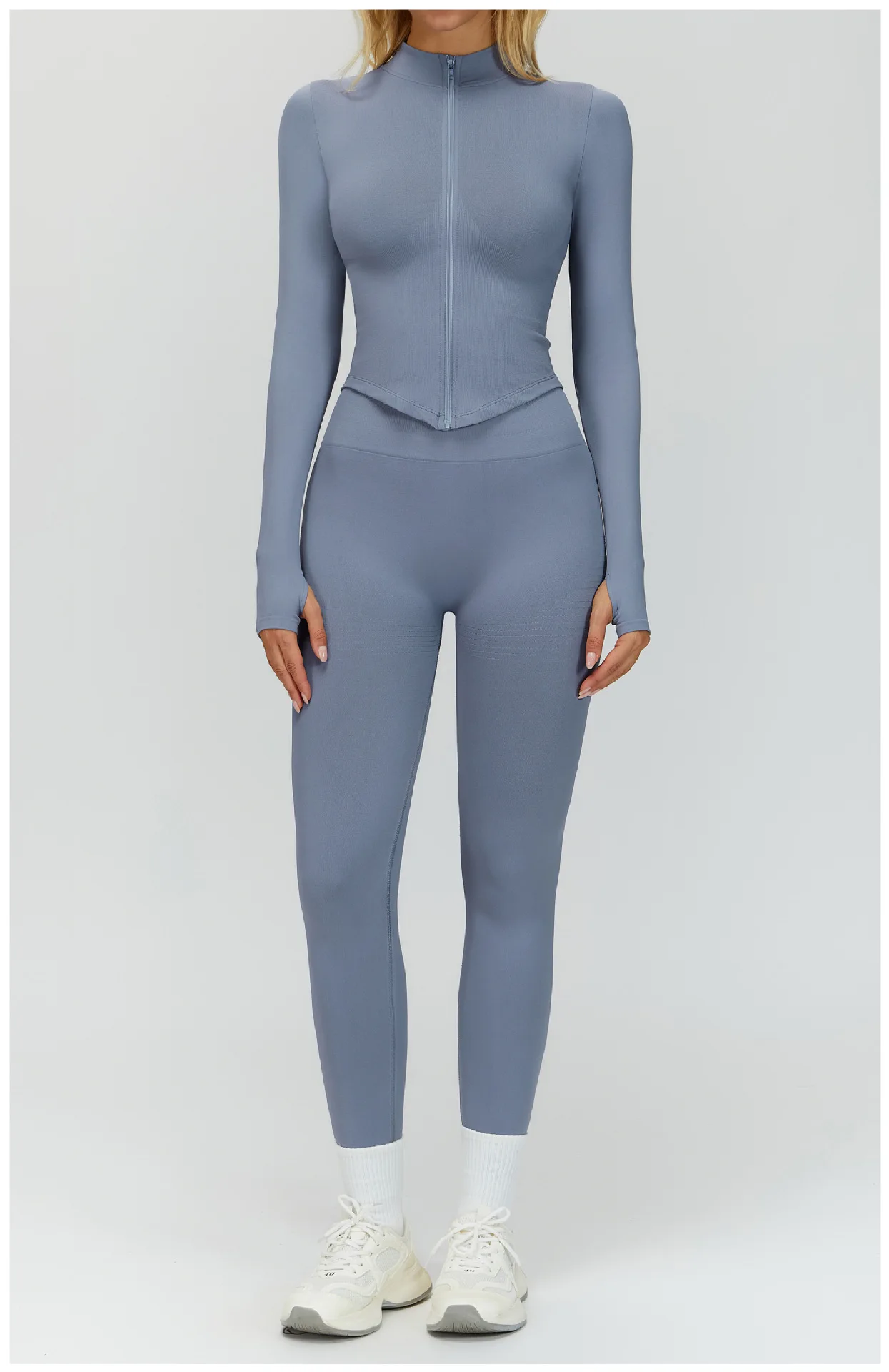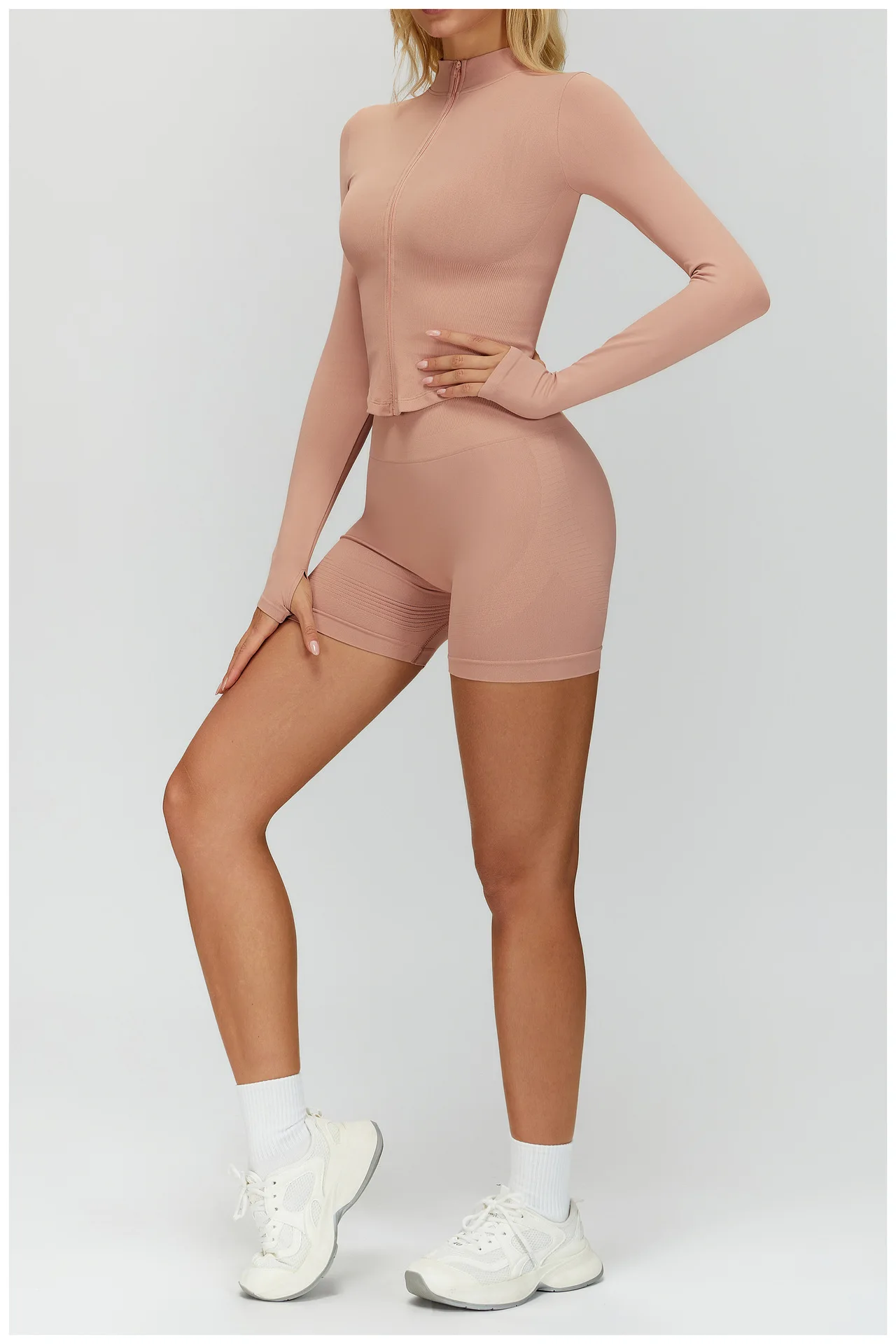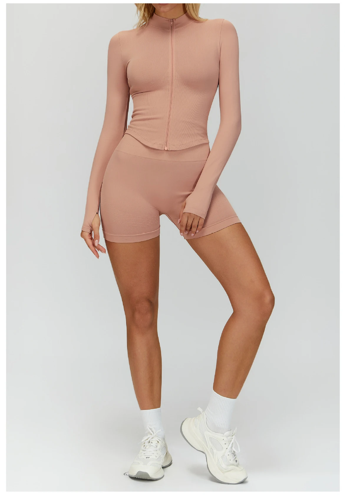 Engineered for performance and style, this seamless sculpt zip-up activewear set combines form-fitting construction with functional design. The smooth, seam-free fabric moves with your body while providing subtle shaping support. Perfect for workouts, yoga, or everyday wear, the zip-up top offers easy layering and ventilation control. Pair it with the matching high-waist bottoms for a coordinated look that transitions seamlessly from studio to street. Premium fabric blend ensures durability and comfort through every activity.