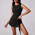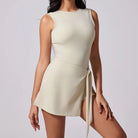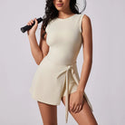 Serve style and performance with the Trend4us Women's Tie-Waist Tennis Romper. Featuring a sleek sleeveless design, built-in shorts, and an asymmetrical wrap skirt with a side tie, this romper blends fashion and function—perfect for tennis, pickleball, or sporty everyday wear.