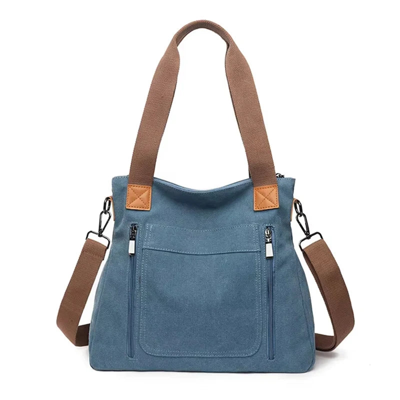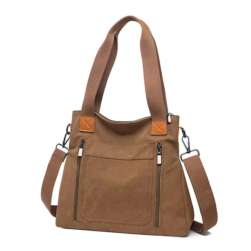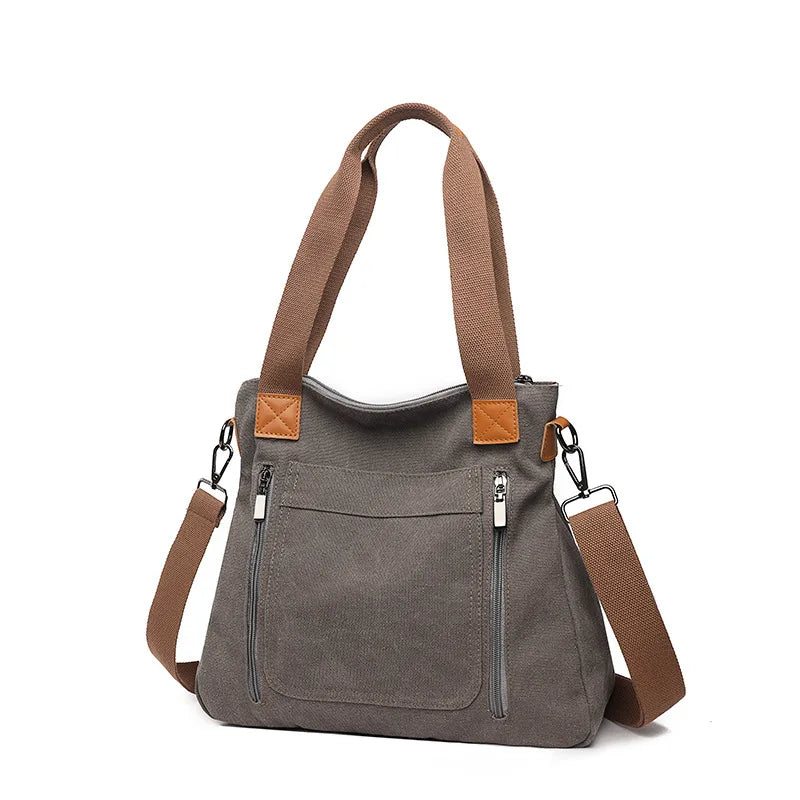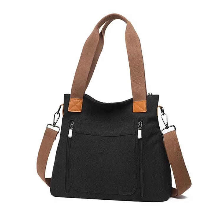 Trend4us Canvas Multi-Pocket Convertible Shoulder Tote Bag