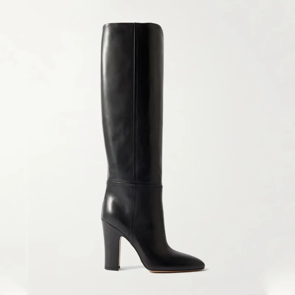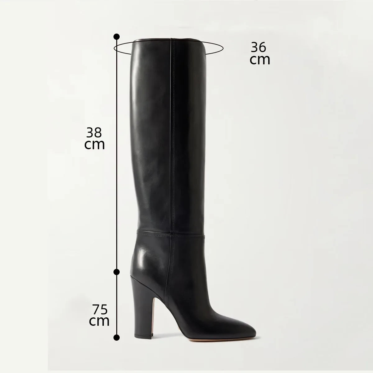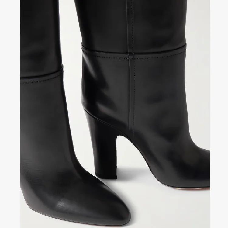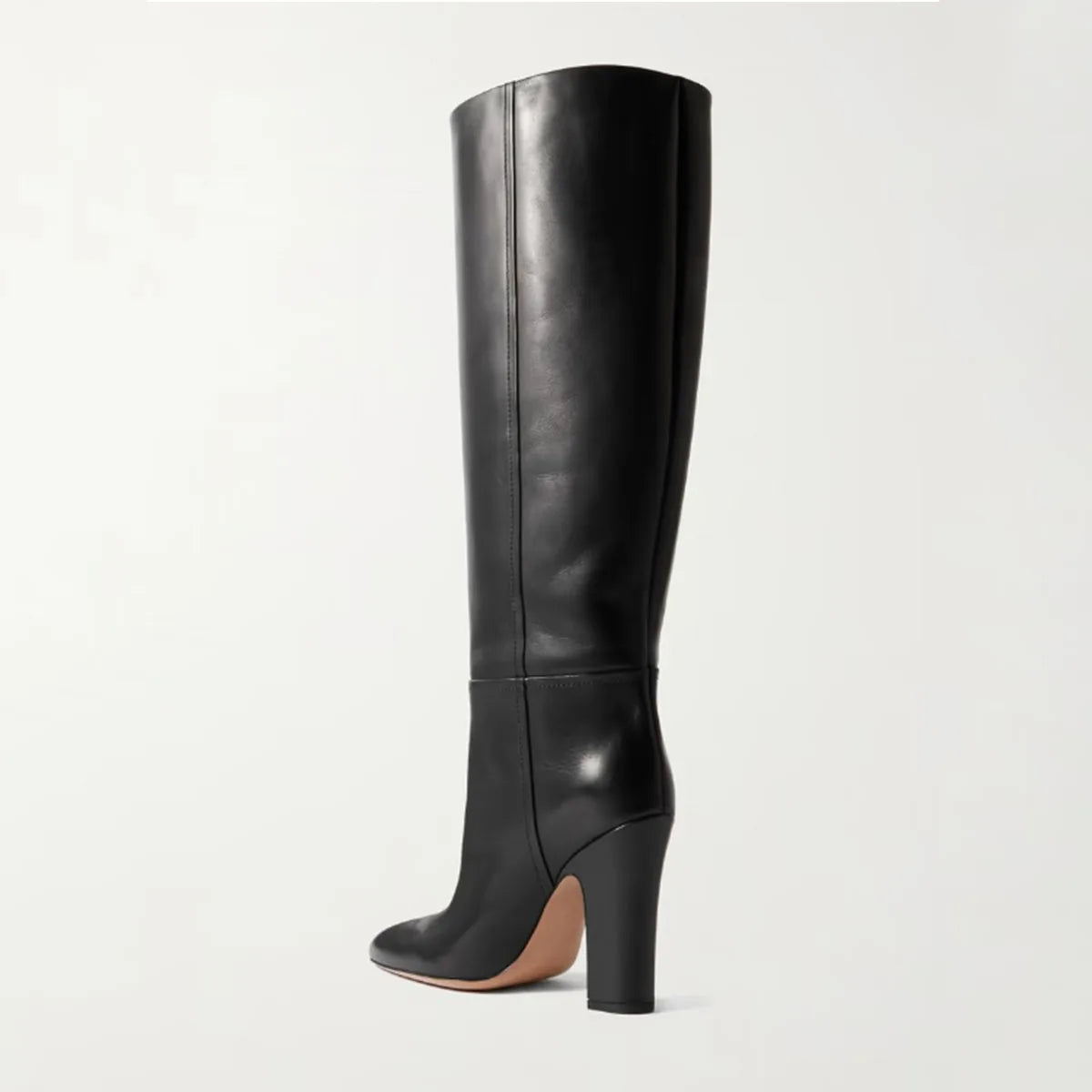 Trend4us Sleek Knee-High Block Heel Leather Boots