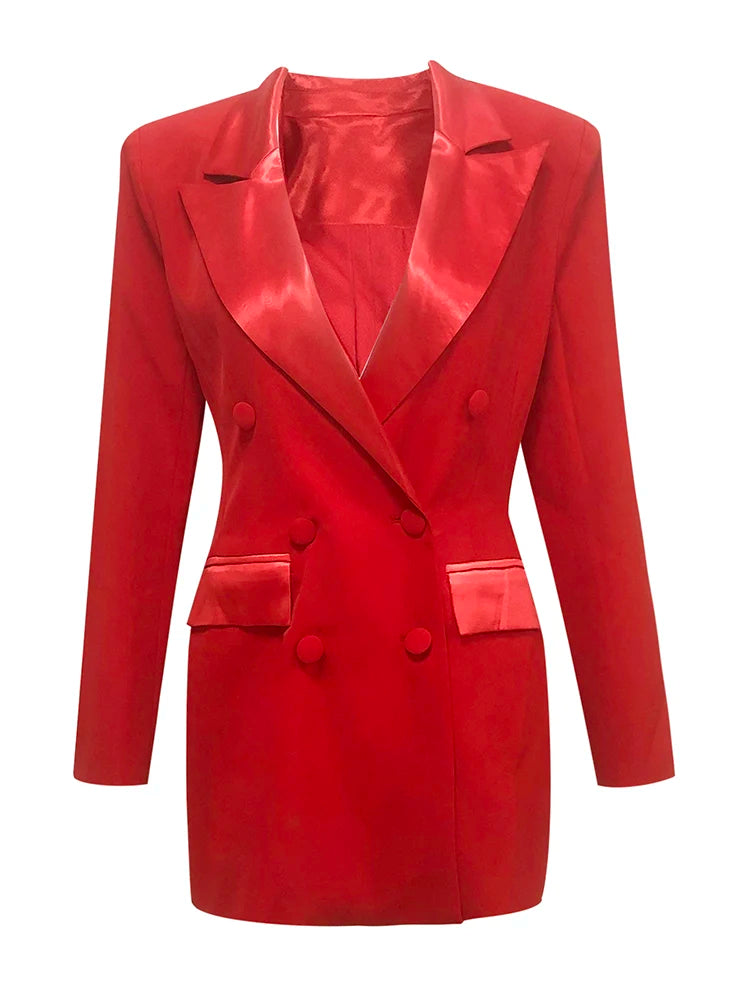 Trend4us Luxe Double-Breasted Satin Lapel Blazer Dress