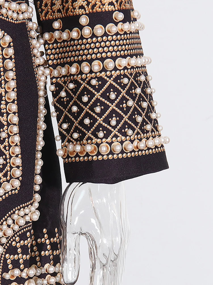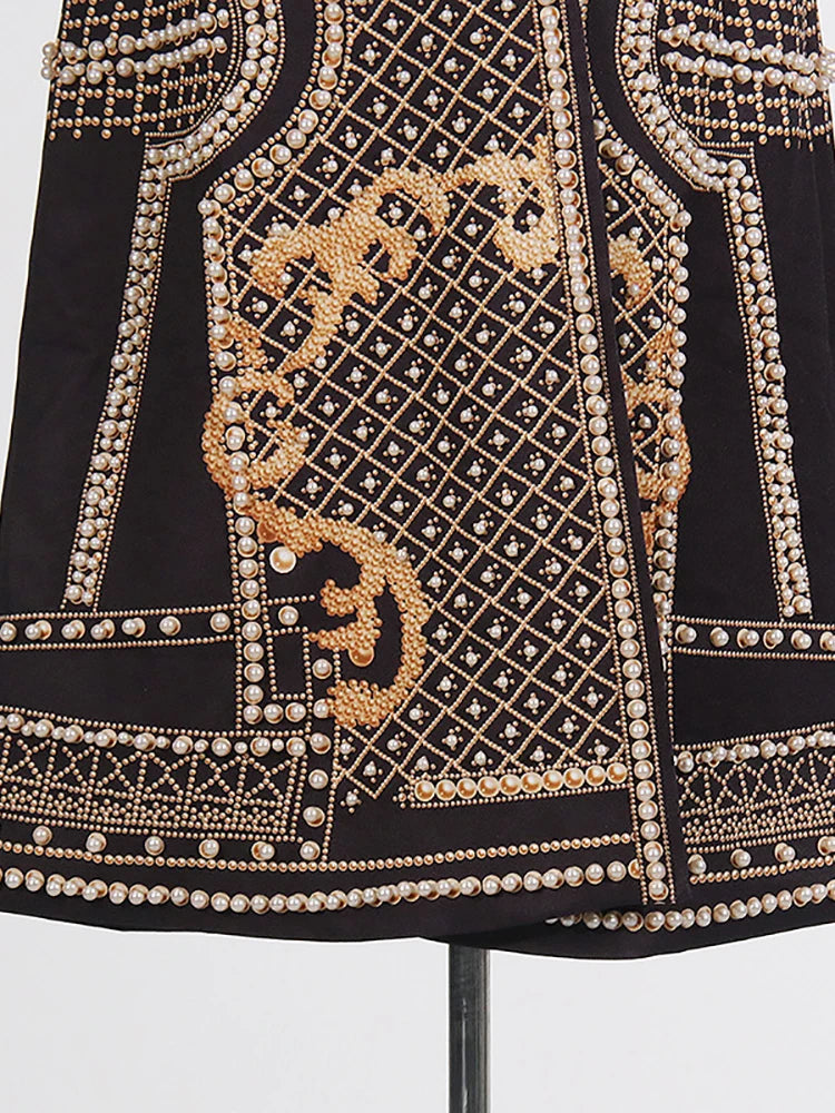 Material: Premium polyester blend with hand-embellished pearls and beads