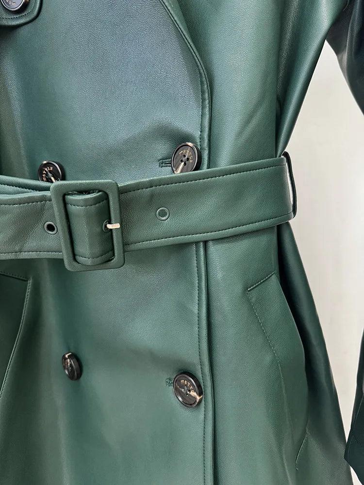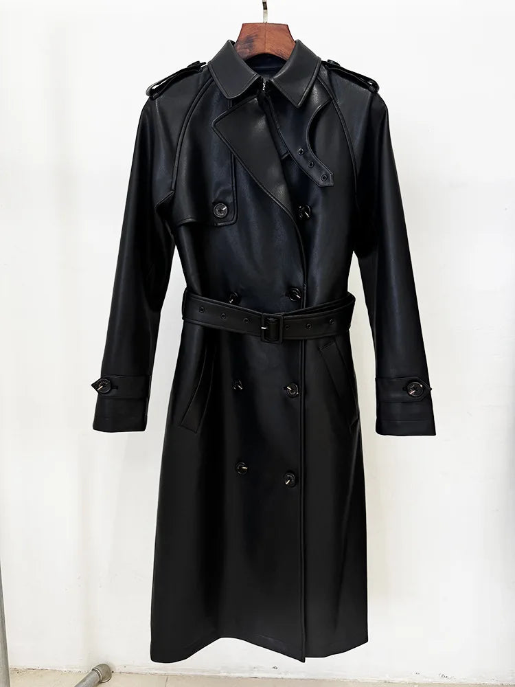 Trend4us Luxe Faux Leather Double-Breasted Trench Coat