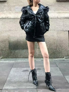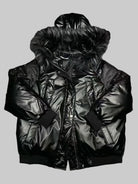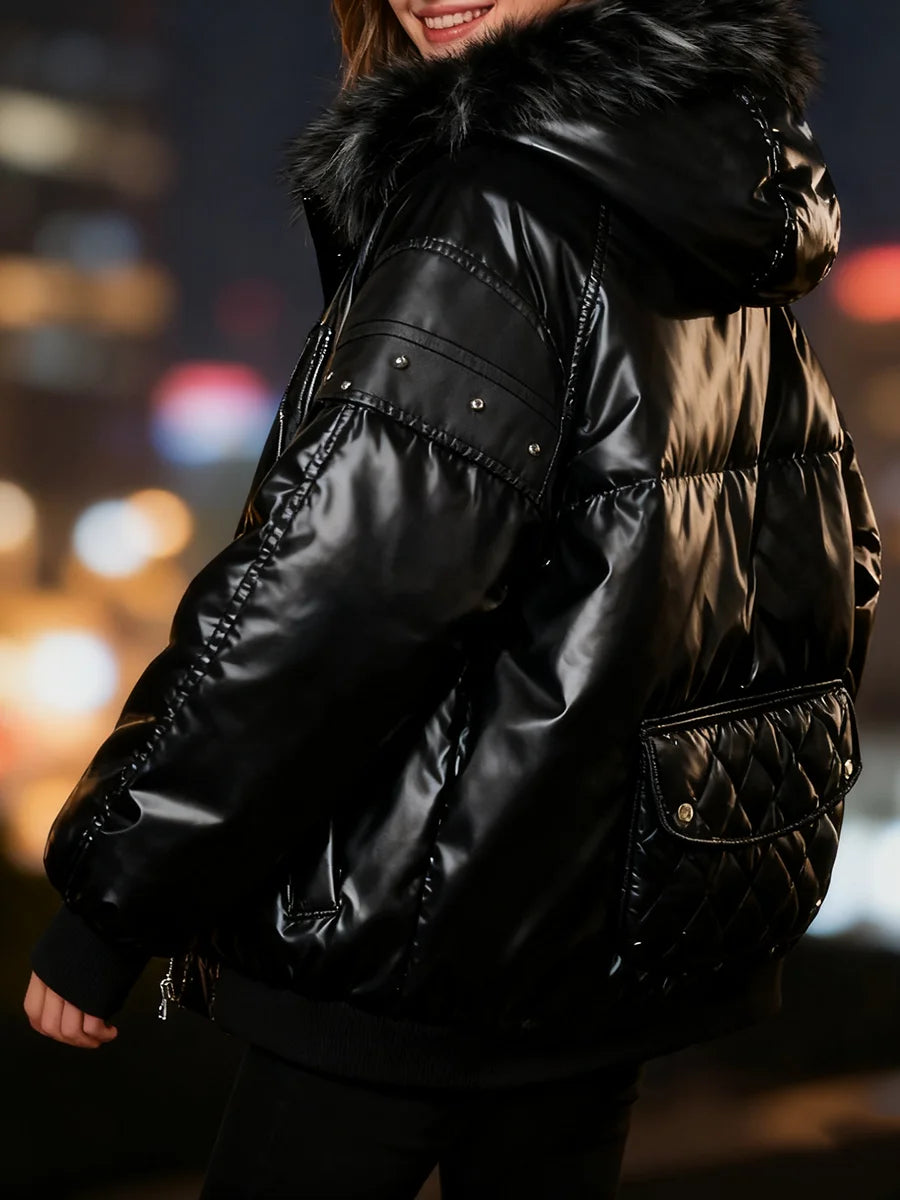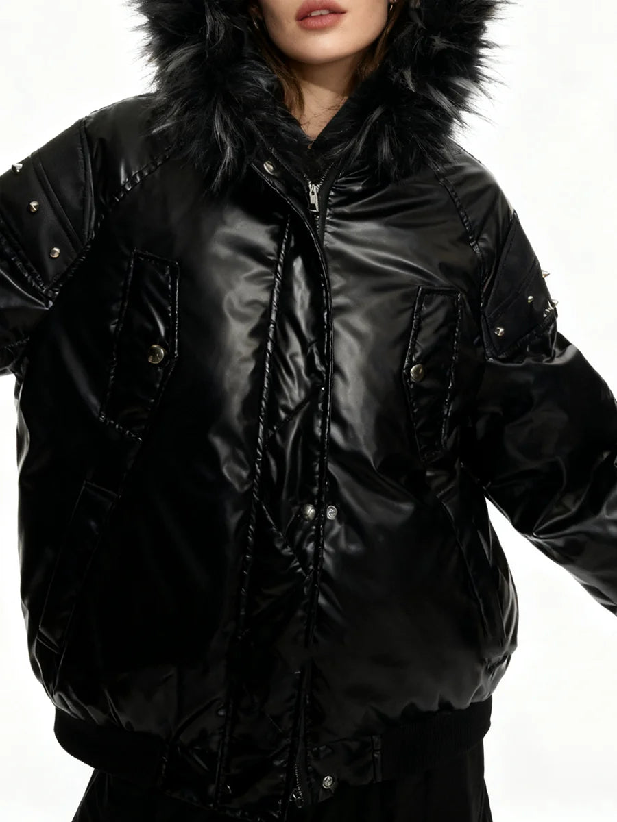 Trend4us Luxe Faux Leather Hooded Puffer Jacket